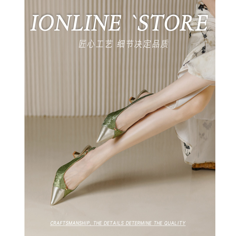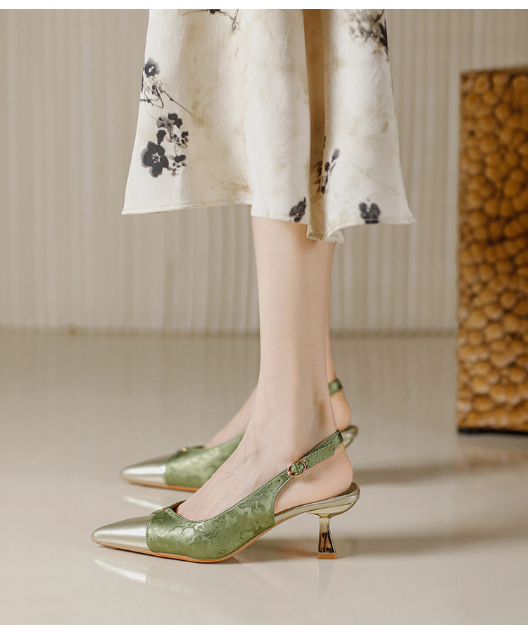 여성을 위한 중국식 새로운 스타일의 뒷굽 샌들, 프렌치 스타일, 컬러 블록, 뾰족한 발가락, 하이힐, 스틸레토 샌들, 여름스토어 가기