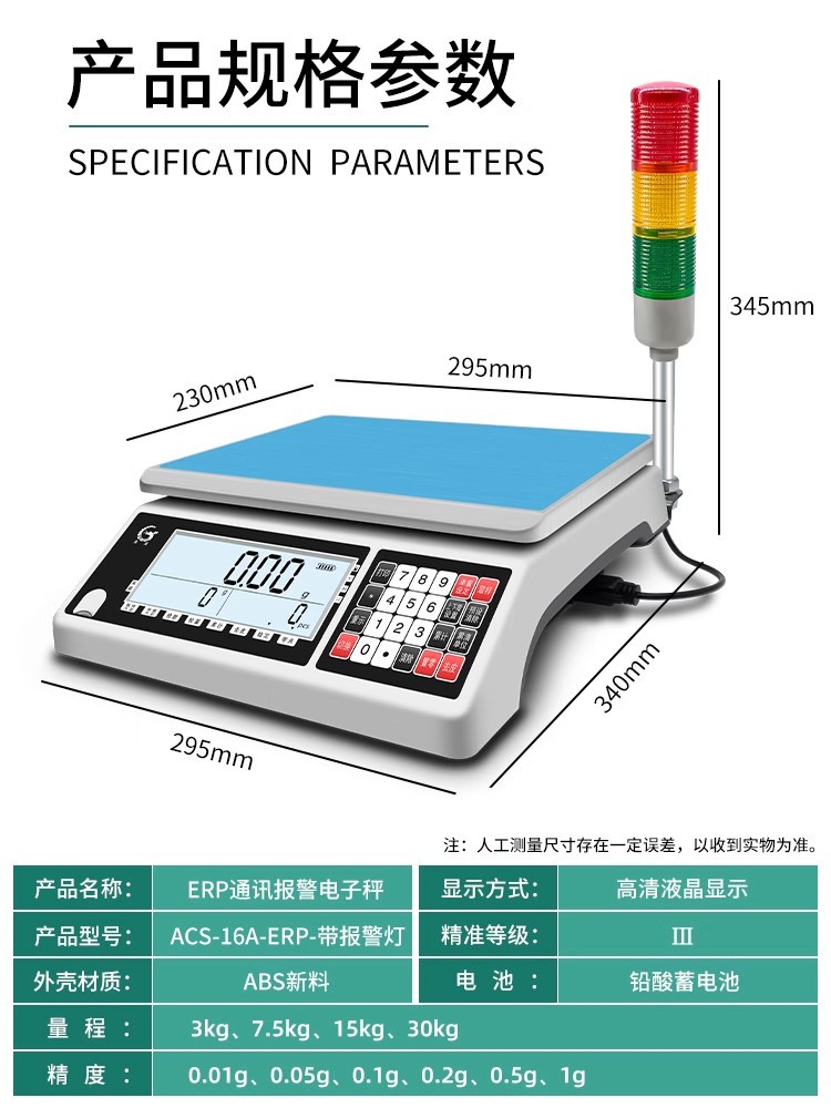 连接电脑ERP电子秤 上下限报警克重秤0.1聚水潭马帮232串口通讯称