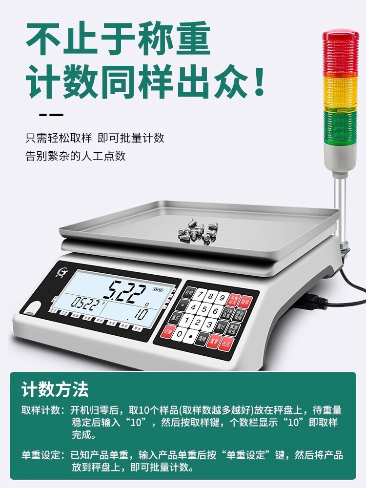 外贸工业计数秤高精度智能接口克称电子称台桌秤货秤大屏显款30kg