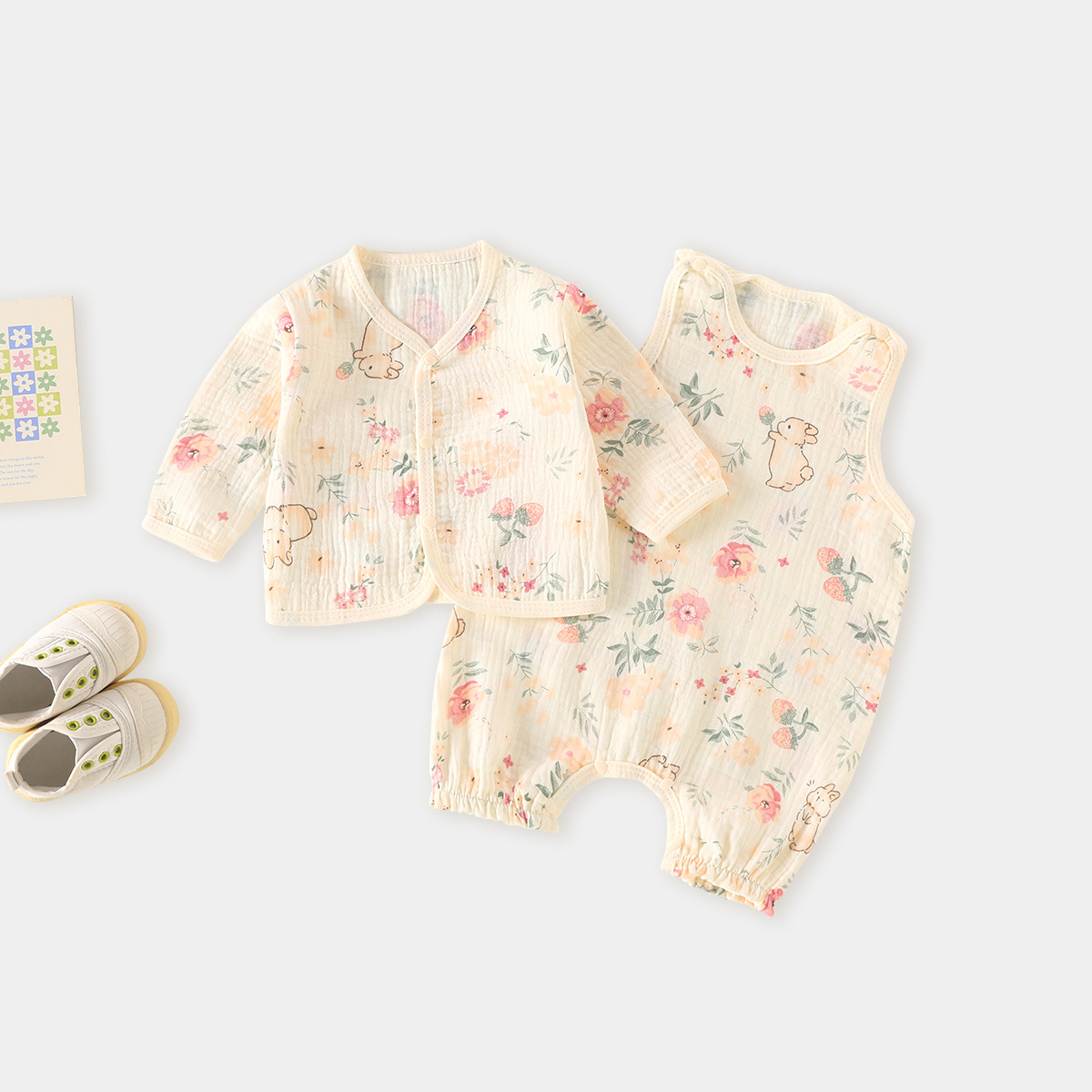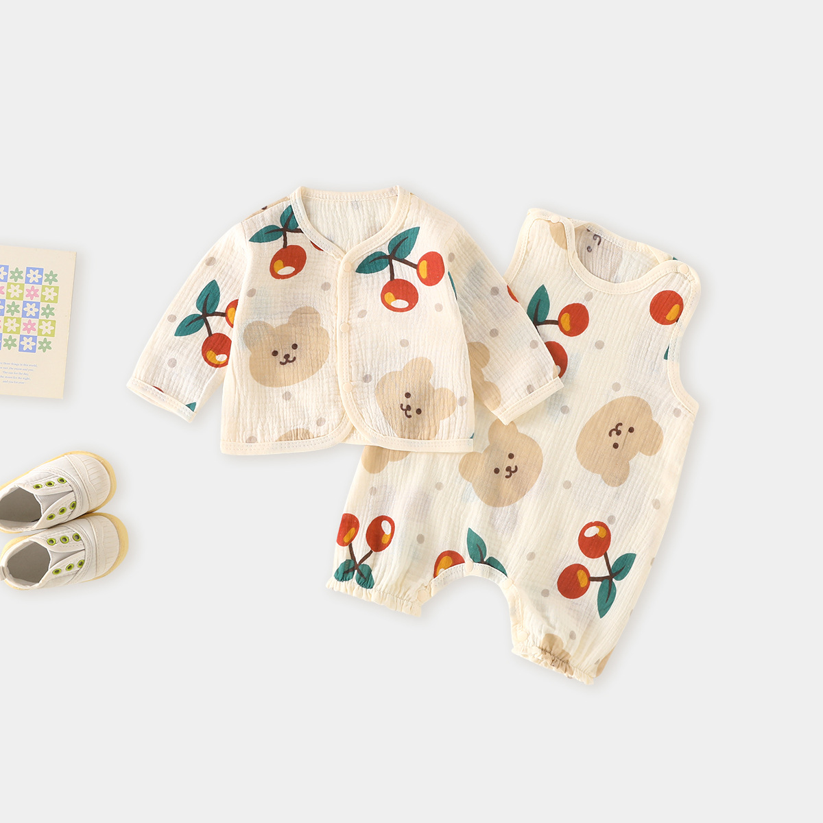 아기 점프 수트 여름 얇은면 신생아 거즈 에어컨 옷 아기 캐미솔스토어 가기
