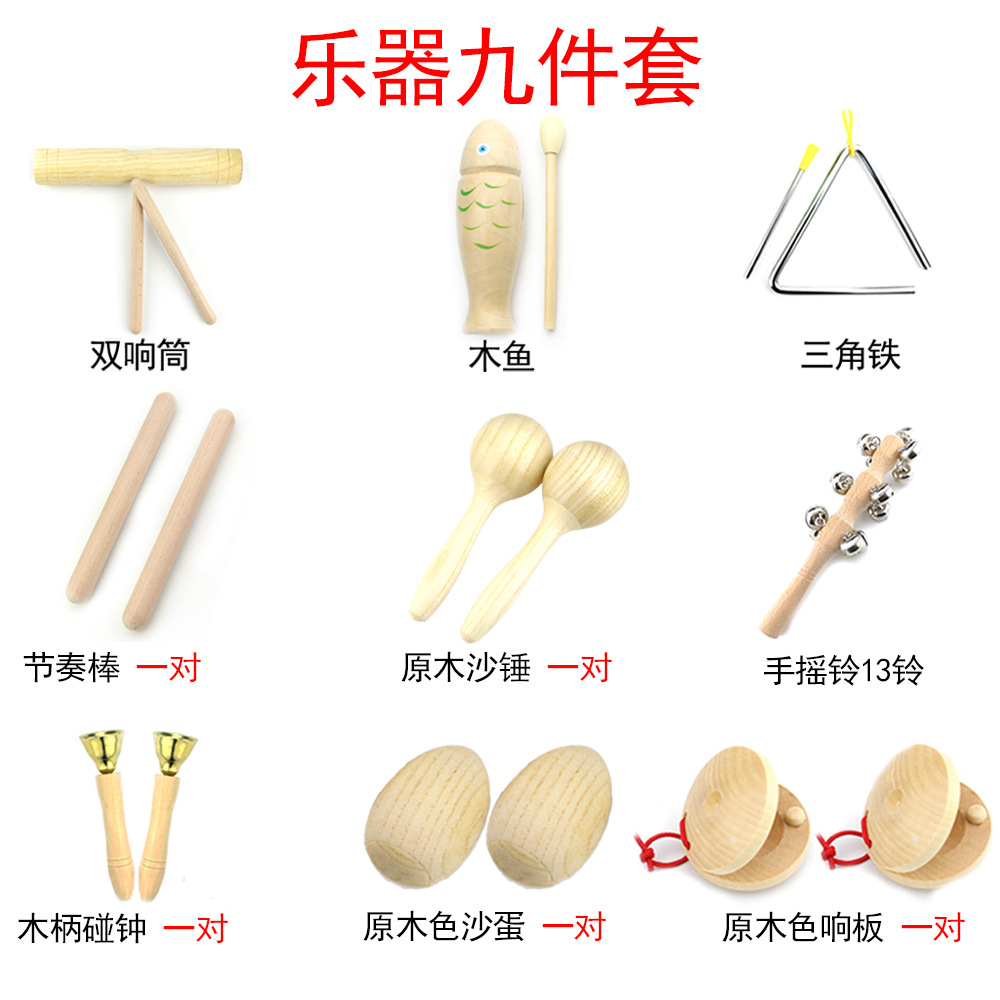 오르프 퍼커션 로그 세트 가르치는 에이즈 터치 우드 피쉬 사운딩 보드 샌드 해머 에그 손목 탬버린 트라이앵글 더블 링