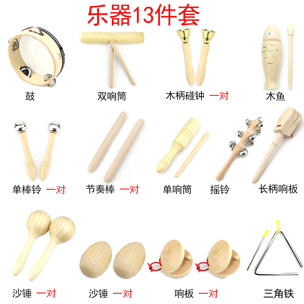 오르프 퍼커션 로그 세트 가르치는 에이즈 터치 우드 피쉬 사운딩 보드 샌드 해머 에그 손목 탬버린 트라이앵글 더블 링스토어 가기
