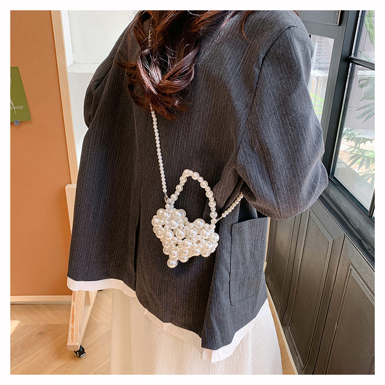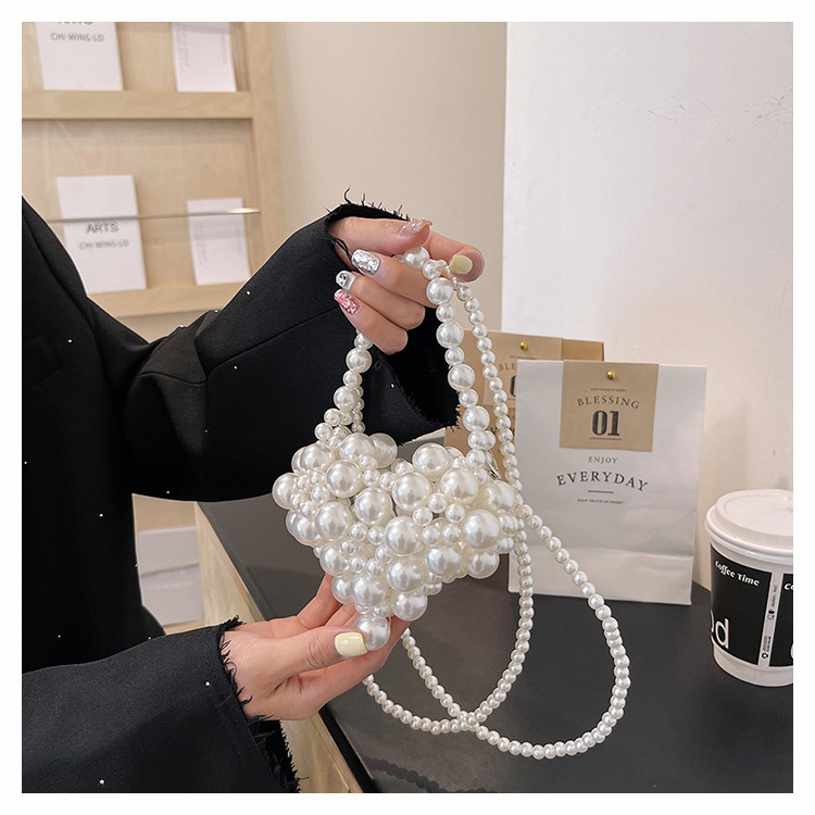2024 봄과 여름 새로운 진주 가방 간단한 대기 단일 어깨 다시 귀여운 작은 장식 가방 캐주얼 여행 가방