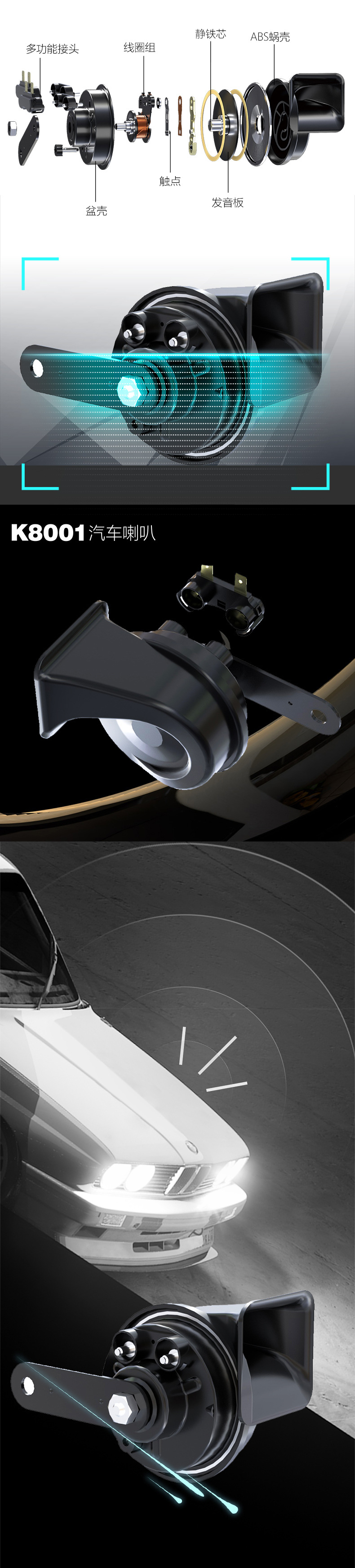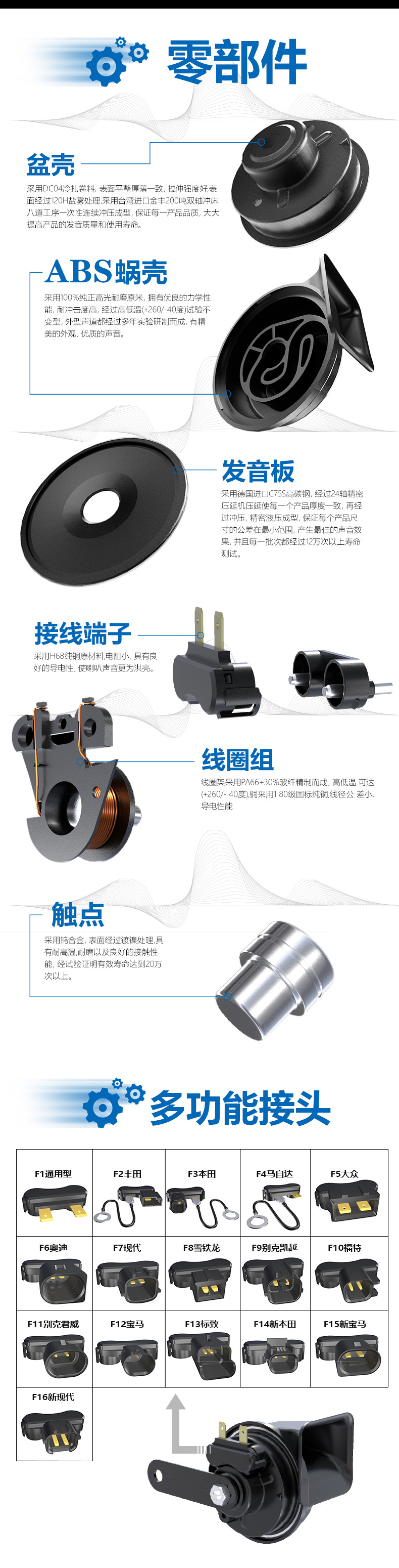 汽车配件蜗牛喇叭 多功能可换头鸣笛喇叭 厂家源头工厂 一件代发