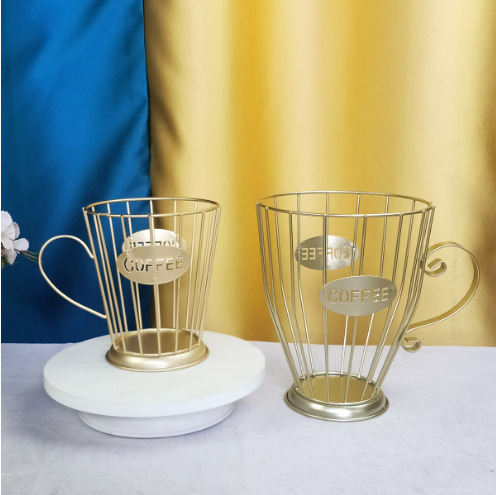 철 커피 캡슐 보관 바구니 스트레이트 에지 컵 모양의 철 과일 바구니 황금 블랙 화이트 홈 장식스토어 가기