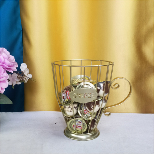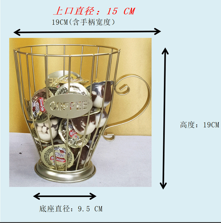 철 커피 캡슐 보관 바구니 스트레이트 에지 컵 모양의 철 과일 바구니 황금 블랙 화이트 홈 장식