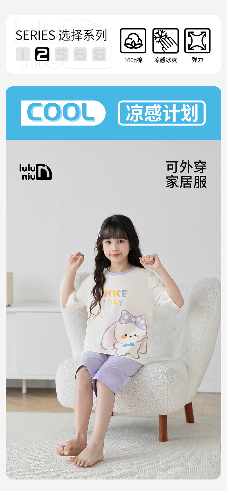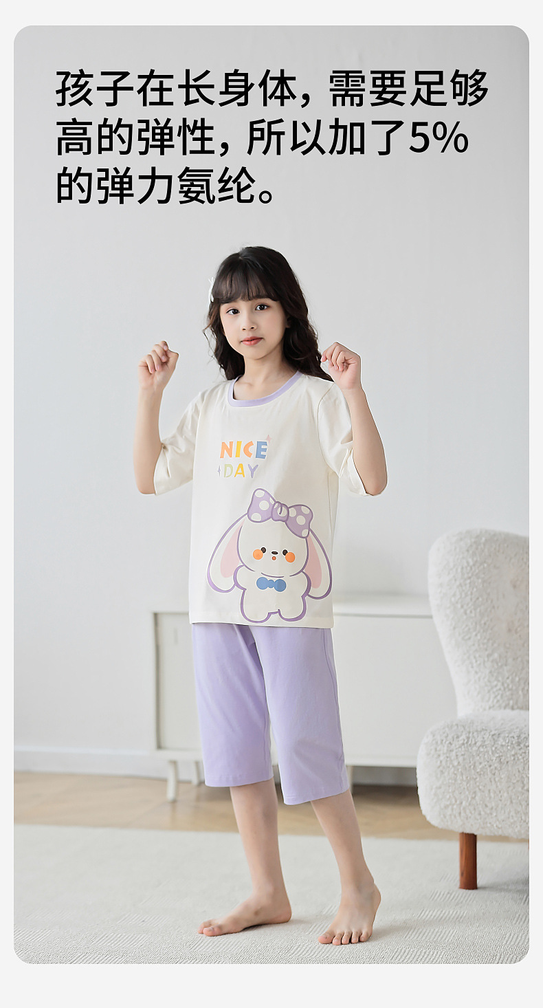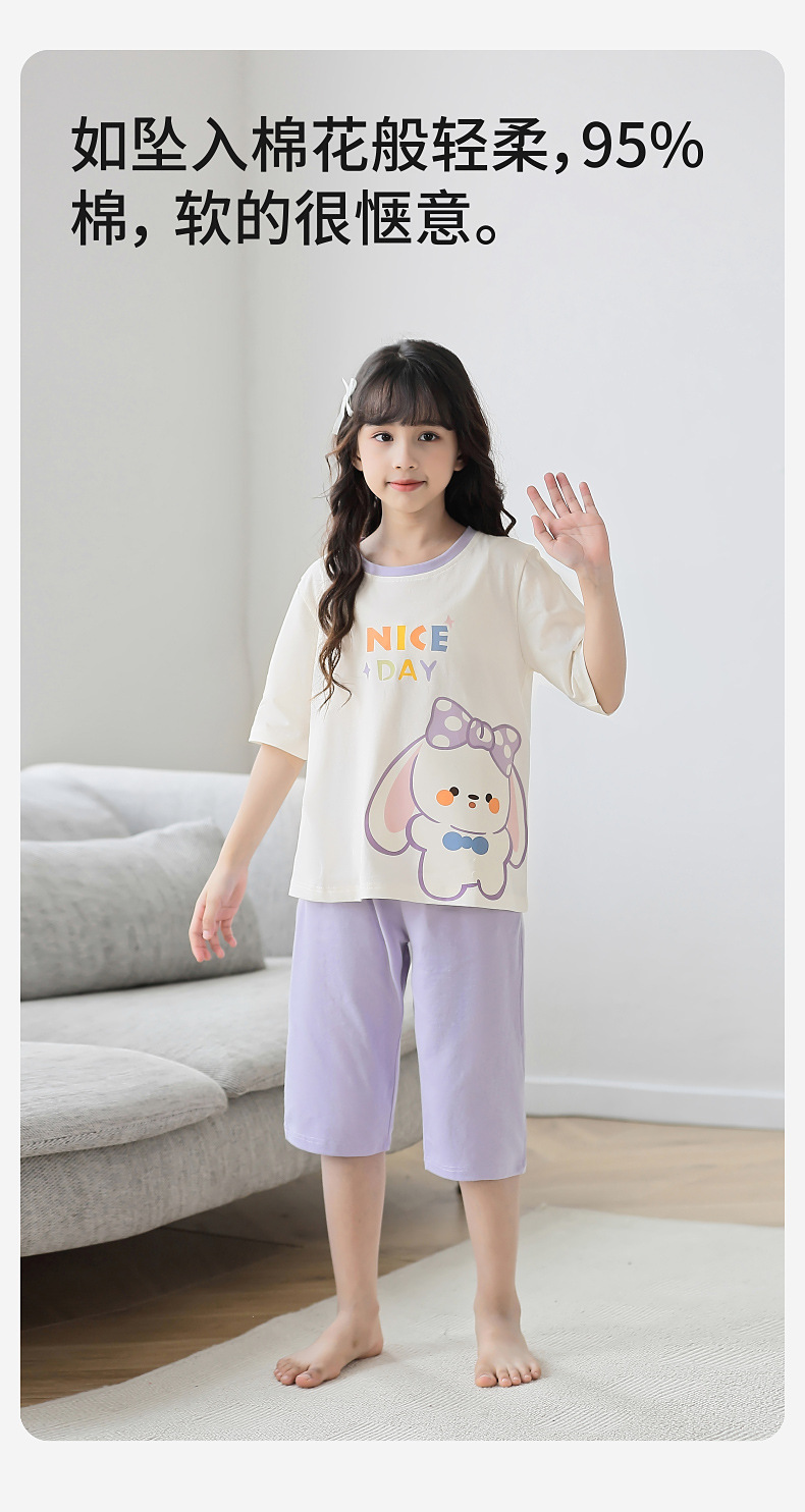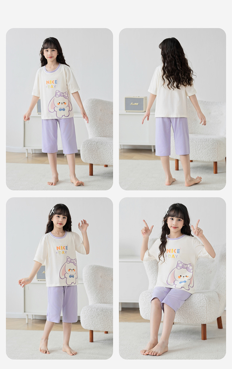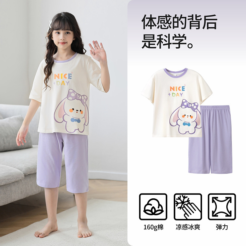 소녀 잠옷 여름 순면 반팔 얇은 소녀 여름 어린이 집 옷 세트 2024 새로운 스타일스토어 가기