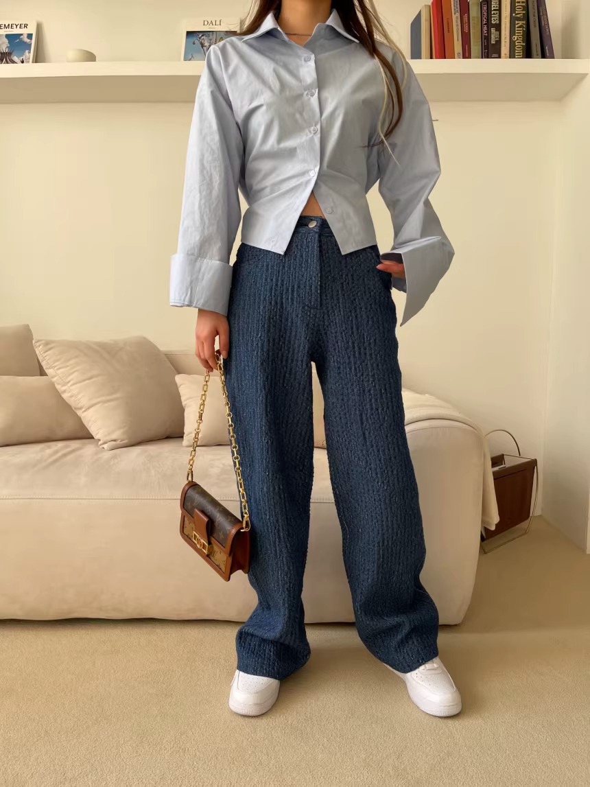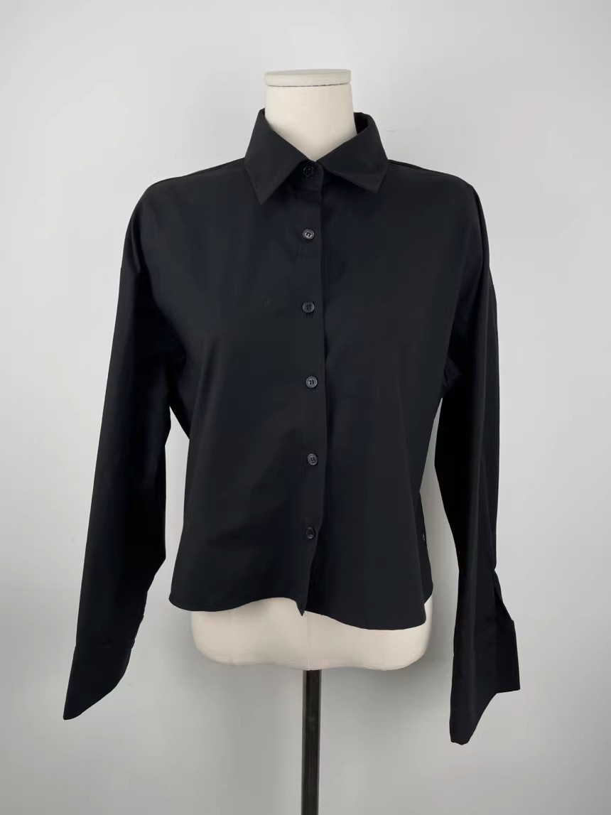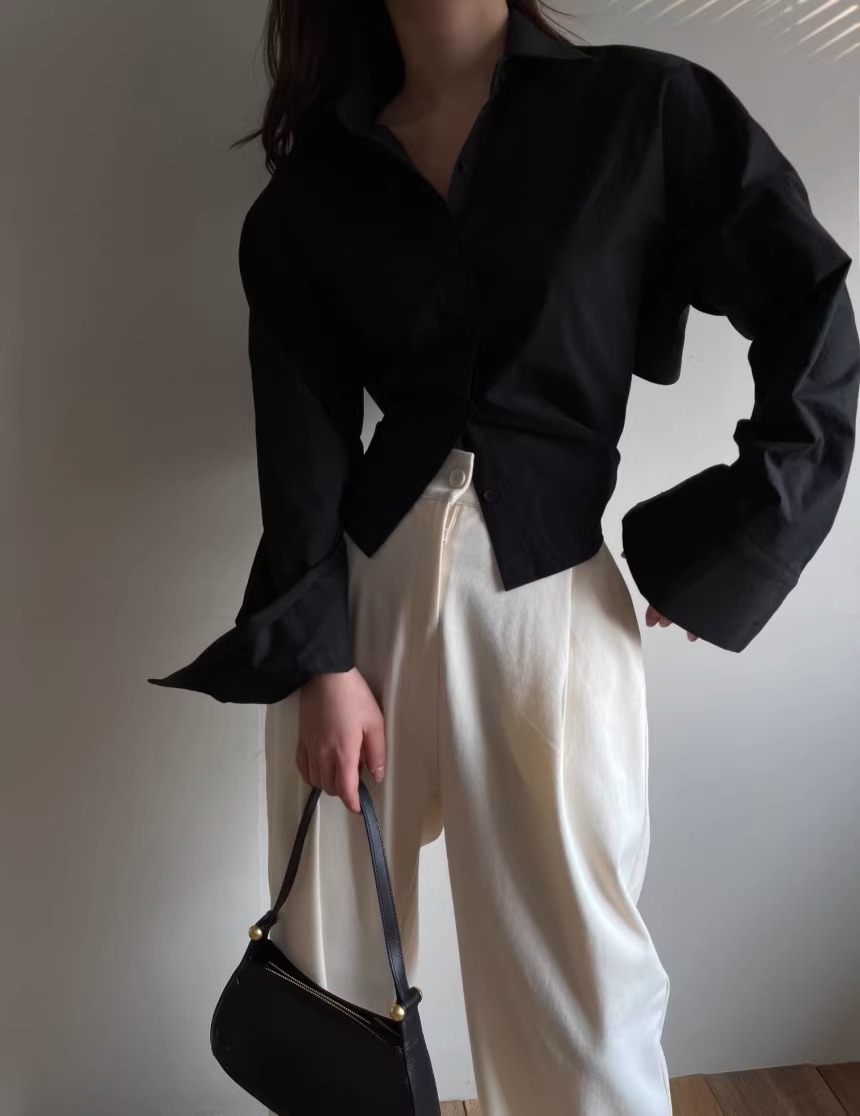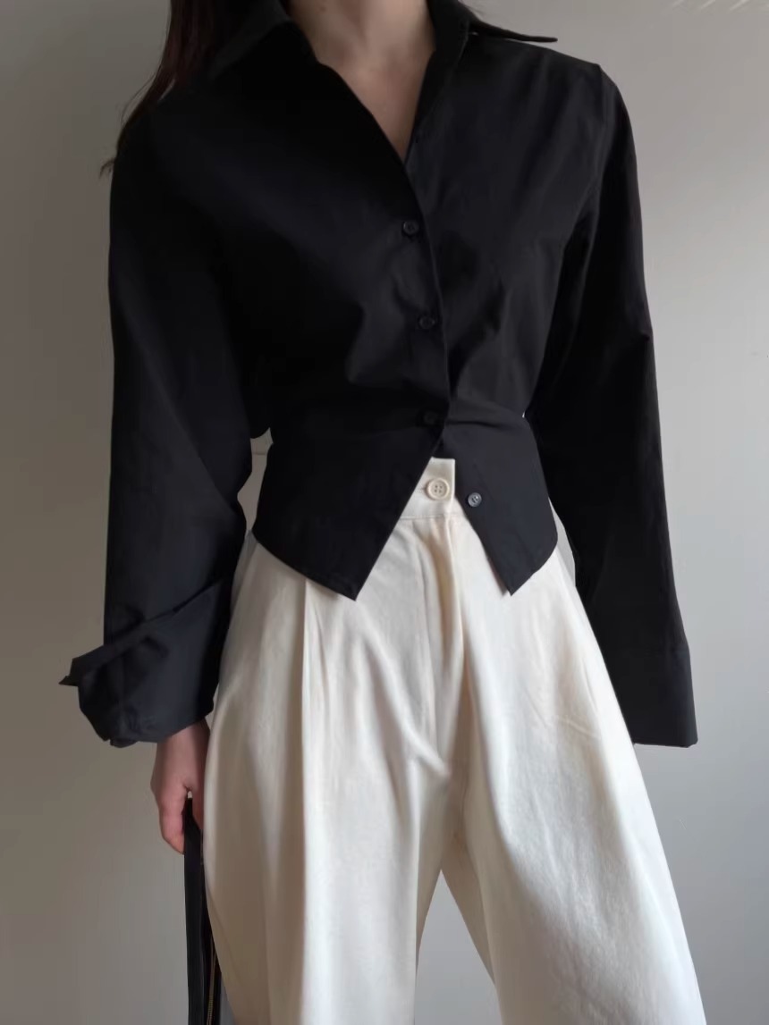 한국 봄 새로운 디자인 센스 틈새 우아한 백 스트랩 탑 슬림 핏 슬리밍 긴 소매 셔츠