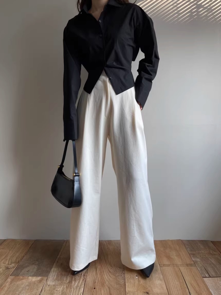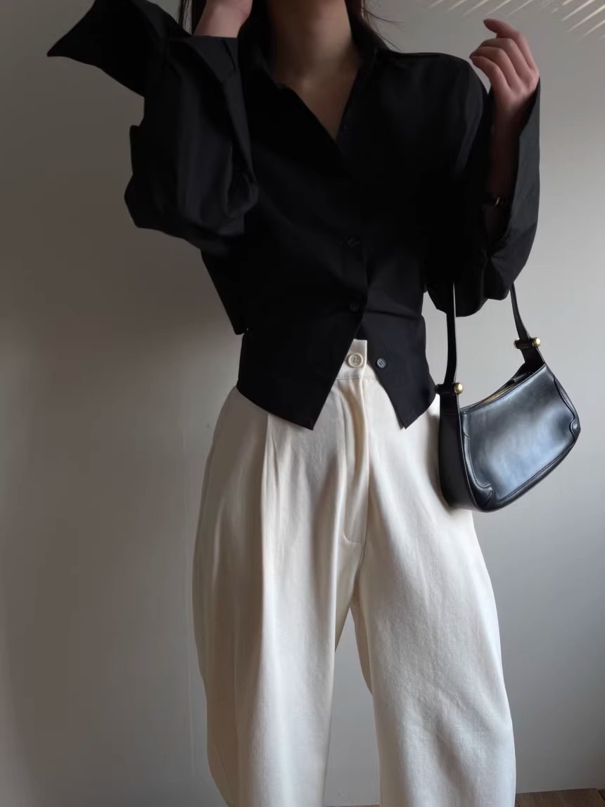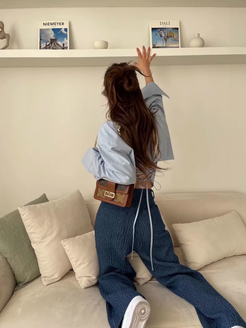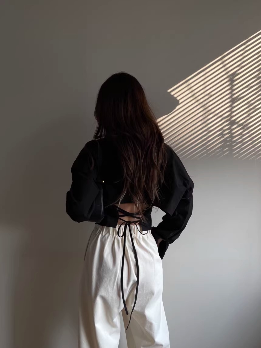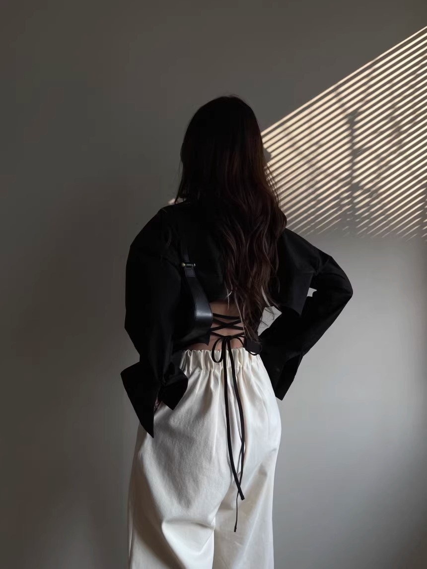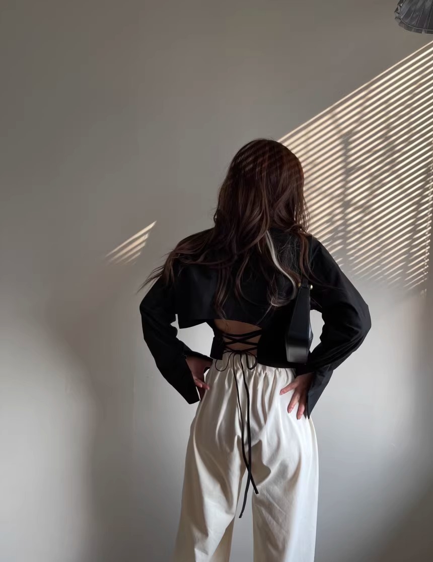 한국 봄 새로운 디자인 센스 틈새 우아한 백 스트랩 탑 슬림 핏 슬리밍 긴 소매 셔츠스토어 가기