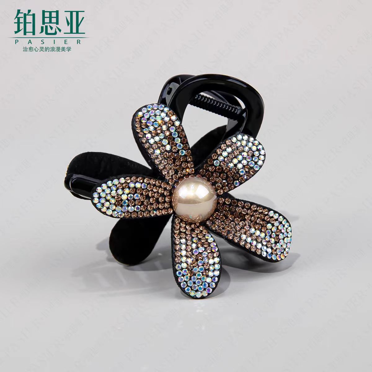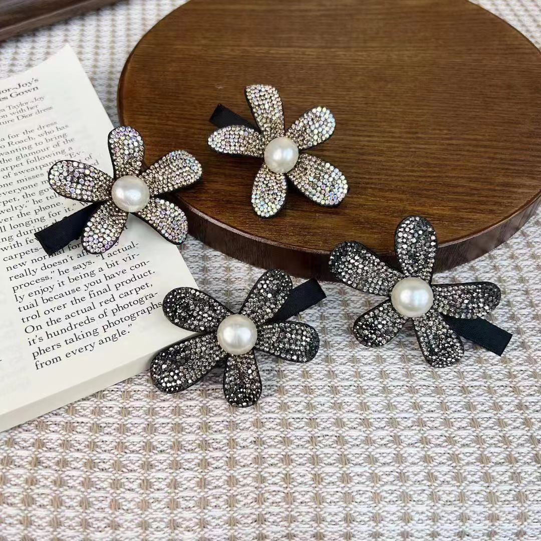 불규칙한 꽃 클립 패션 올 매치 헤어 상어 클립 플래시 다이아몬드 전체 다이아몬드 꽃 머리핀 프랑스 부드러운 구슬 꽃스토어 가기