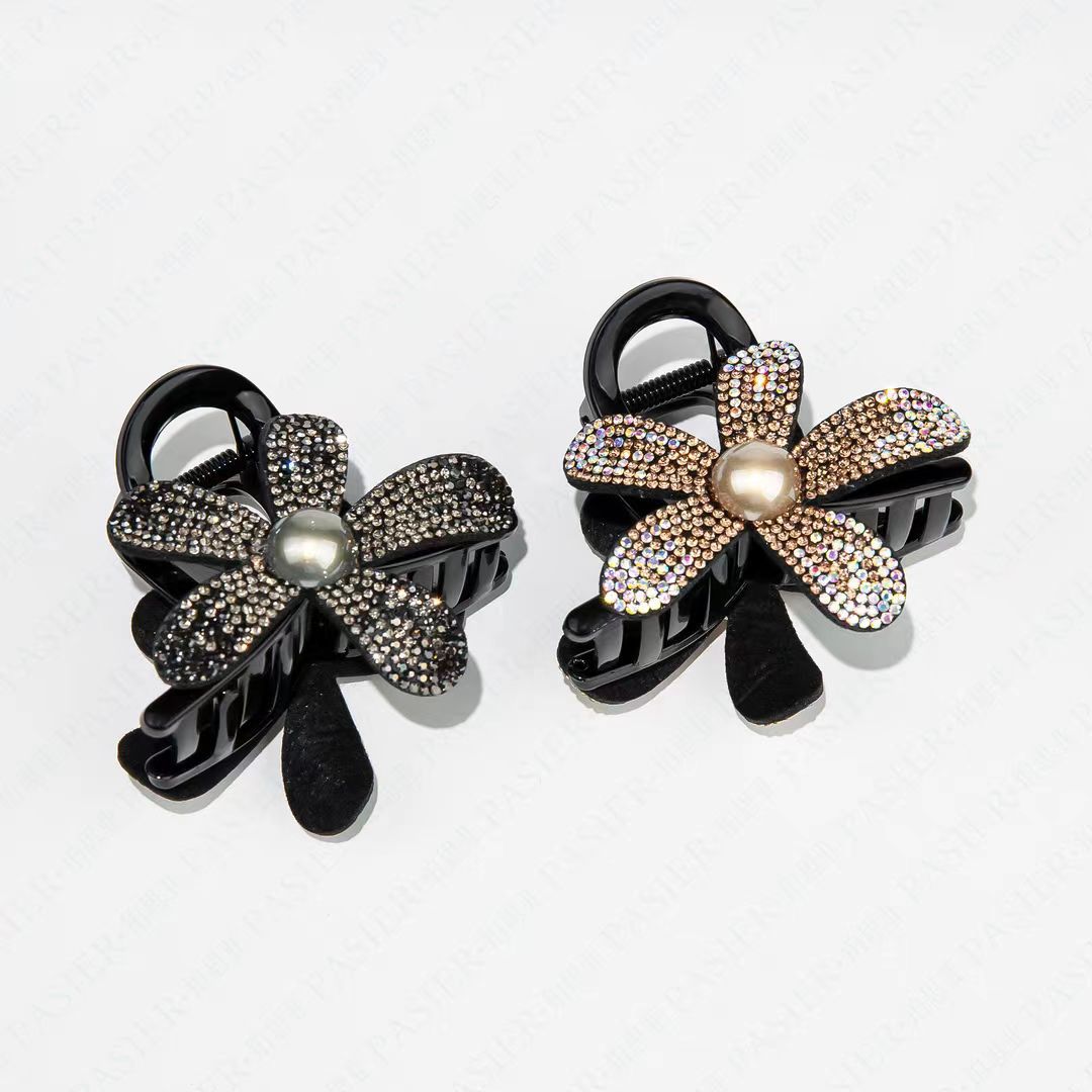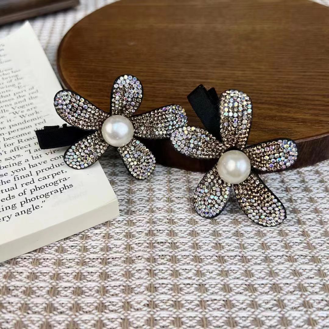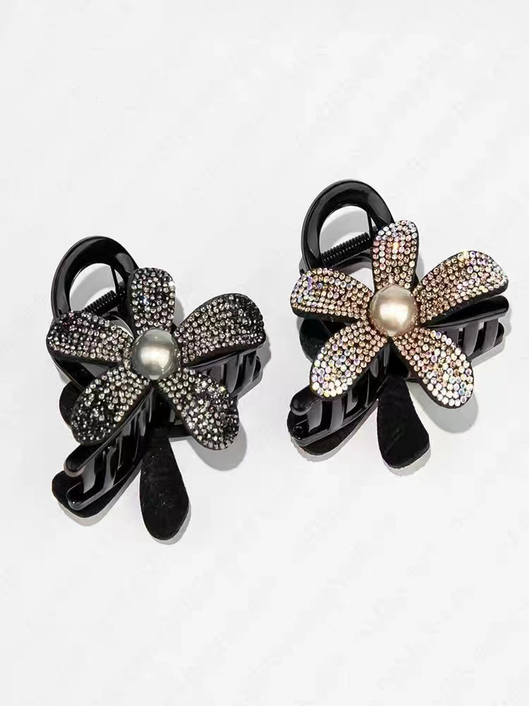 • 플라워 스파클링 다이아몬드 덕 클립 - 샴페인 컬러 2개