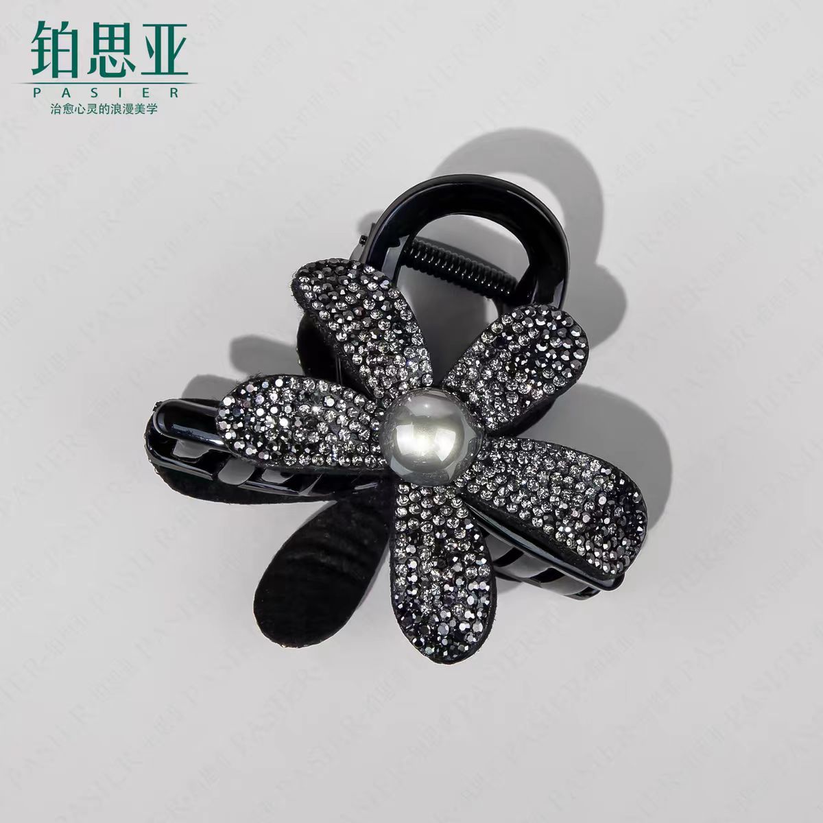 • 플라워 스파클링 다이아몬드 덕 클립 - 그레이 1개