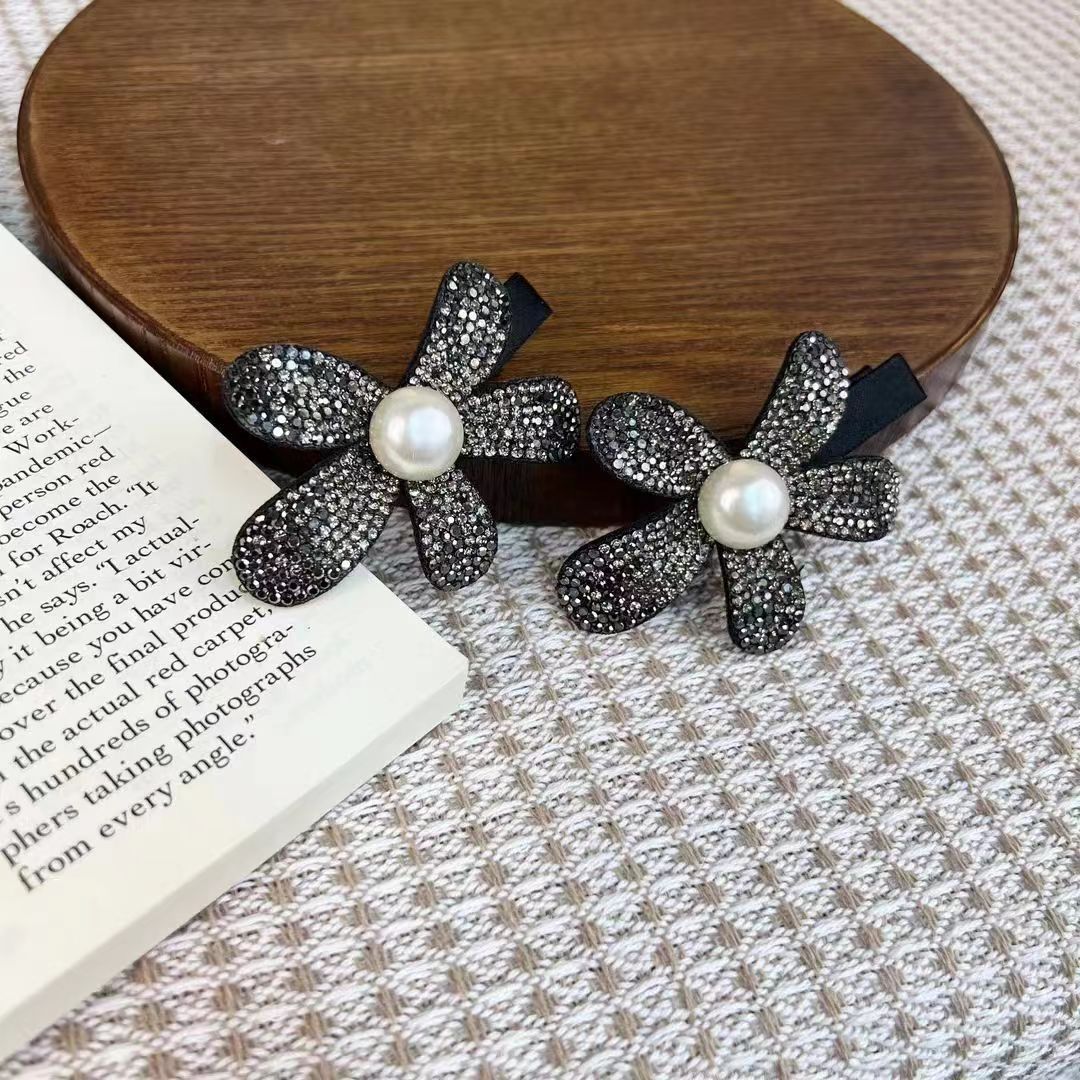 • 플라워 스파클링 다이아몬드 덕 클립 - 그레이 2개