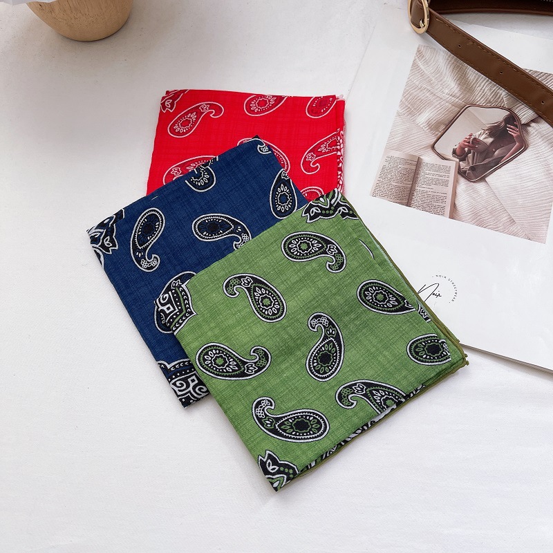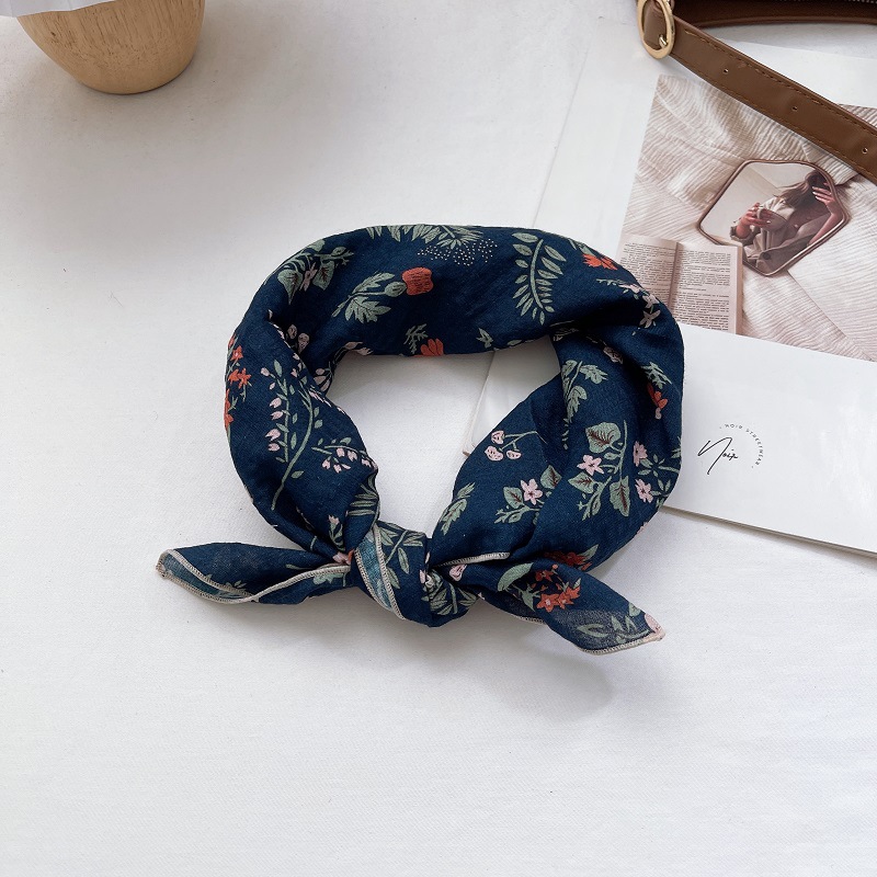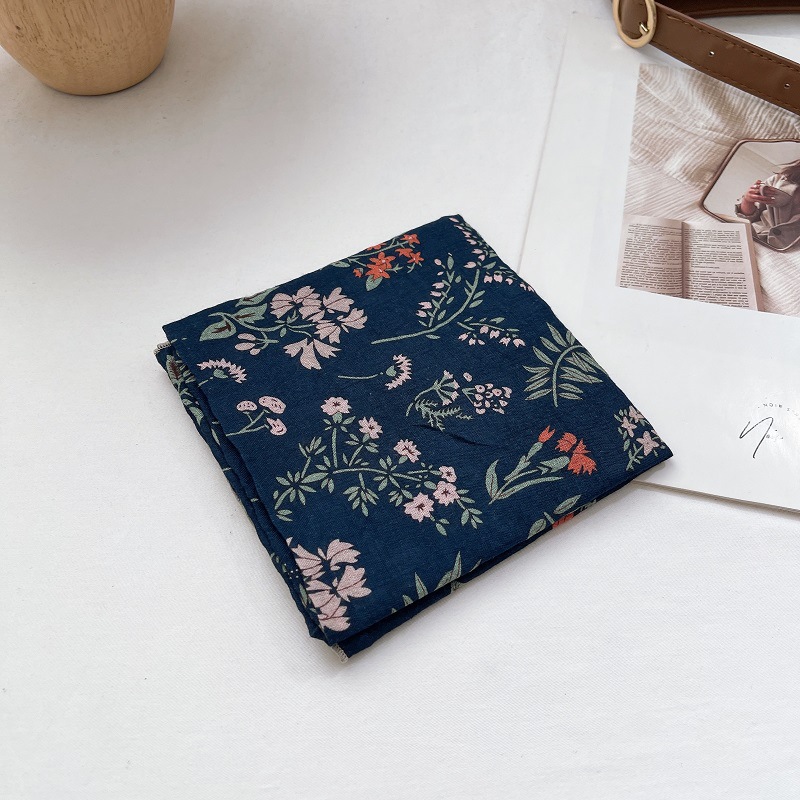전원풍 꽃무늬 면마 스카프, 여성 인플루언서 사진 촬영 분위기 연출용 장식 스카프, 봄 여름 통기성스토어 가기