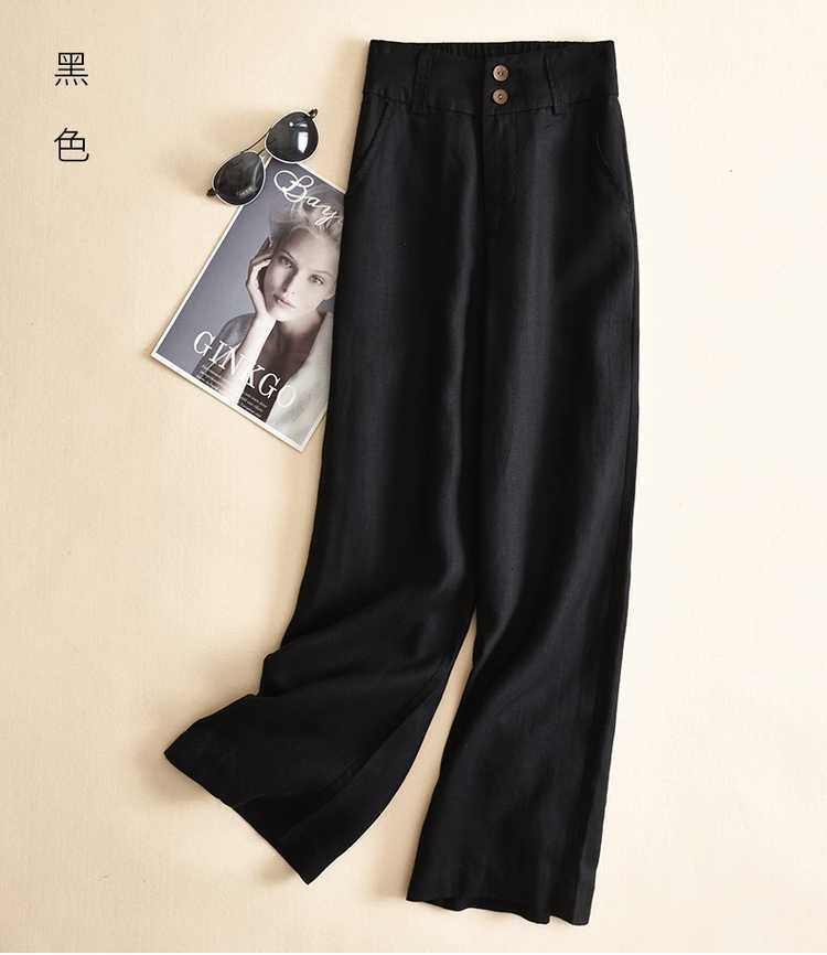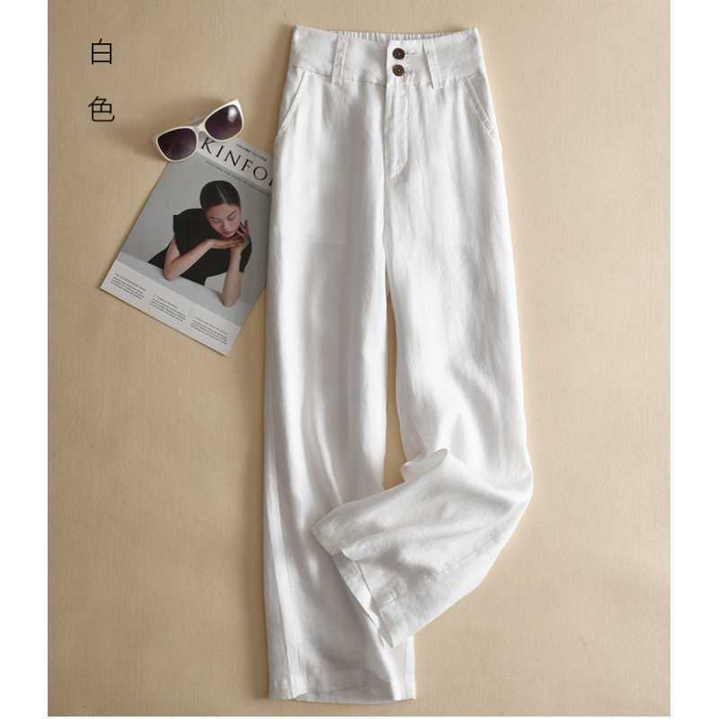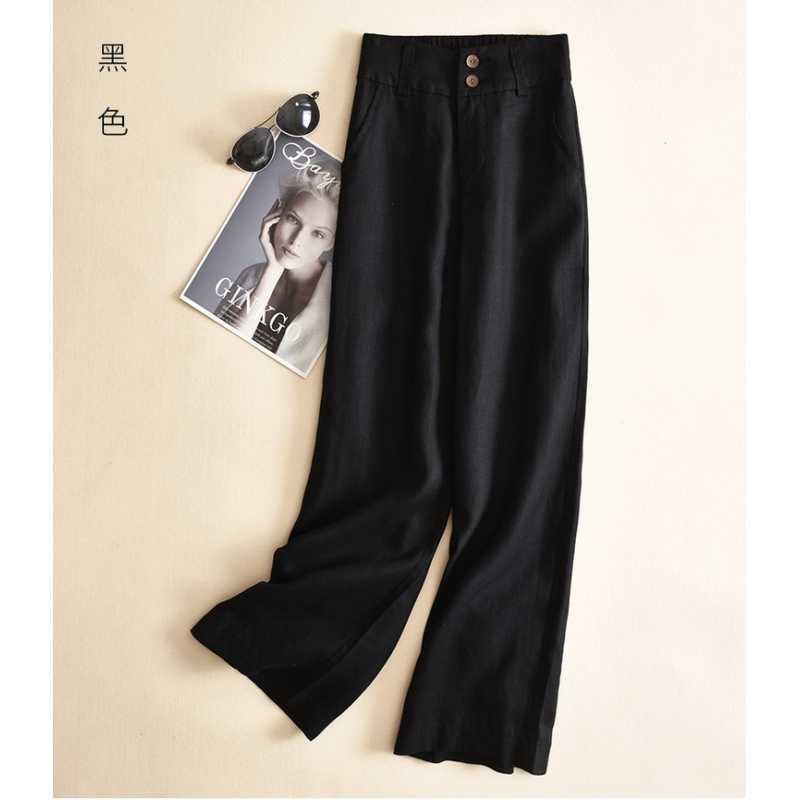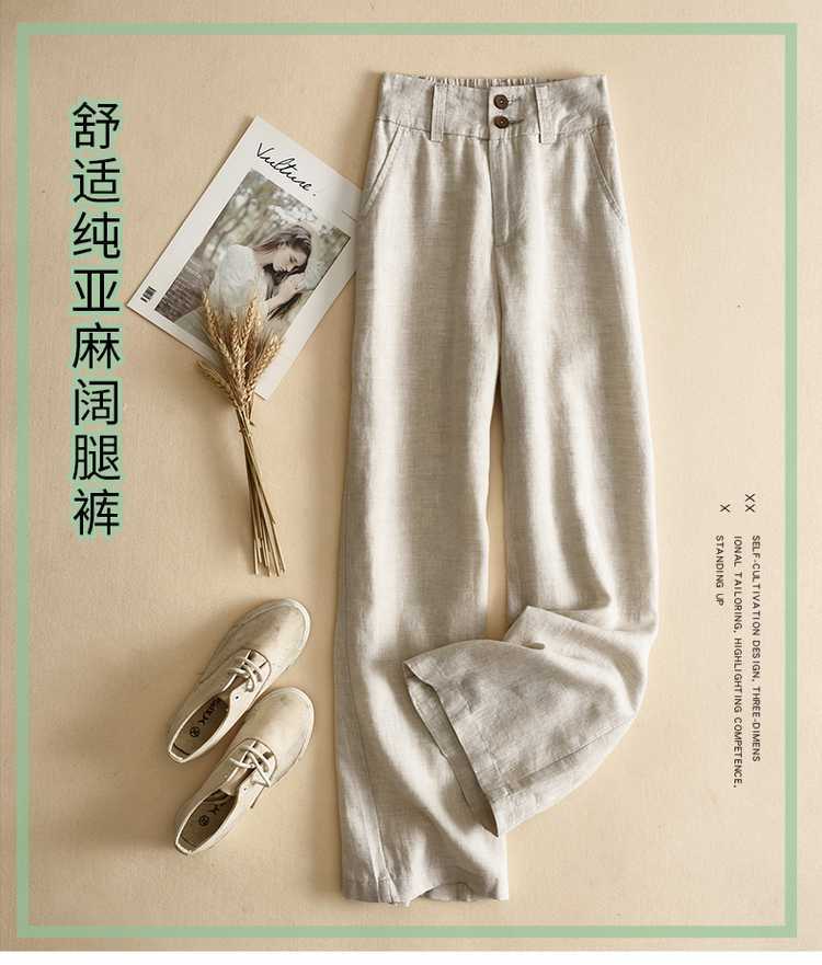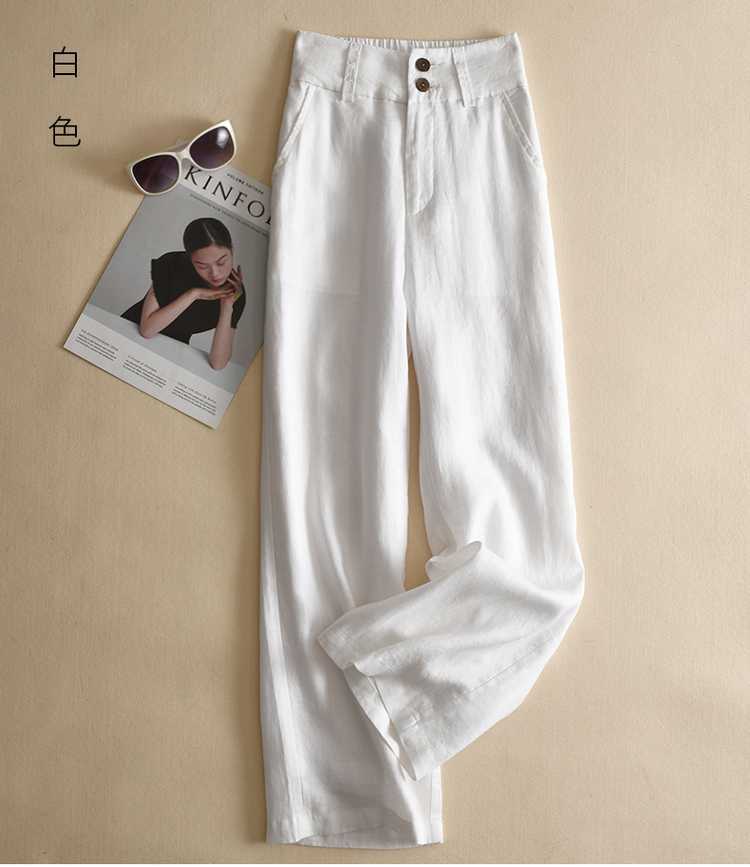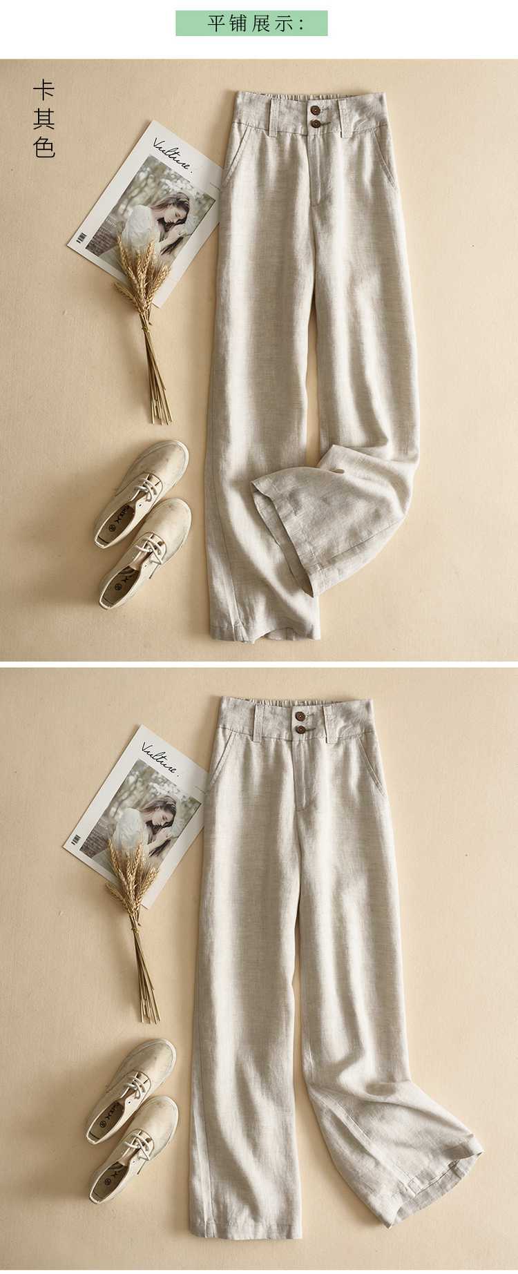 새로운 대외 무역 수출 꼬리 단일 여성의 느슨한 면화 및 린넨 넓은 다리 바지 높은 허리 투약 린넨 스트레이트 바지