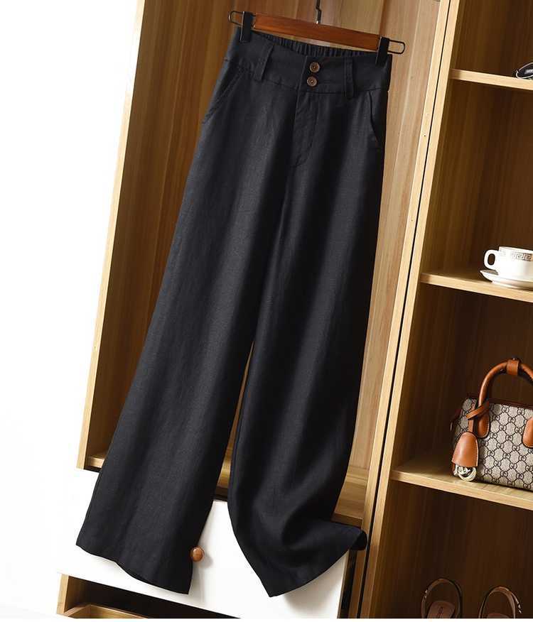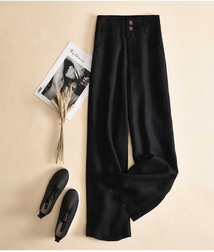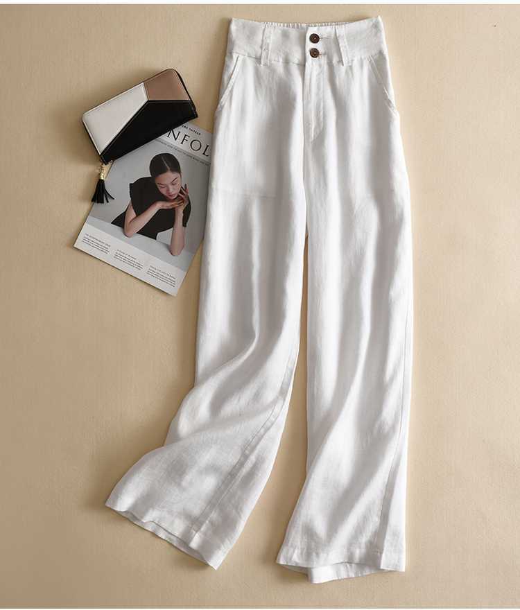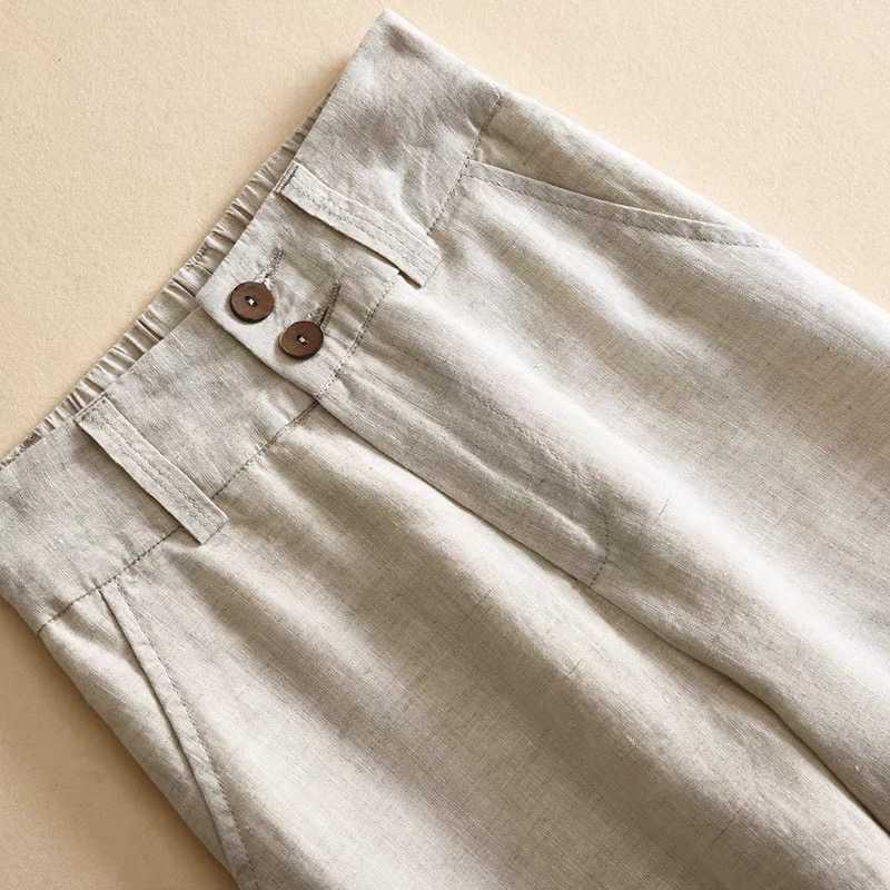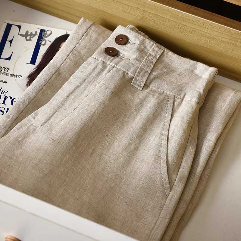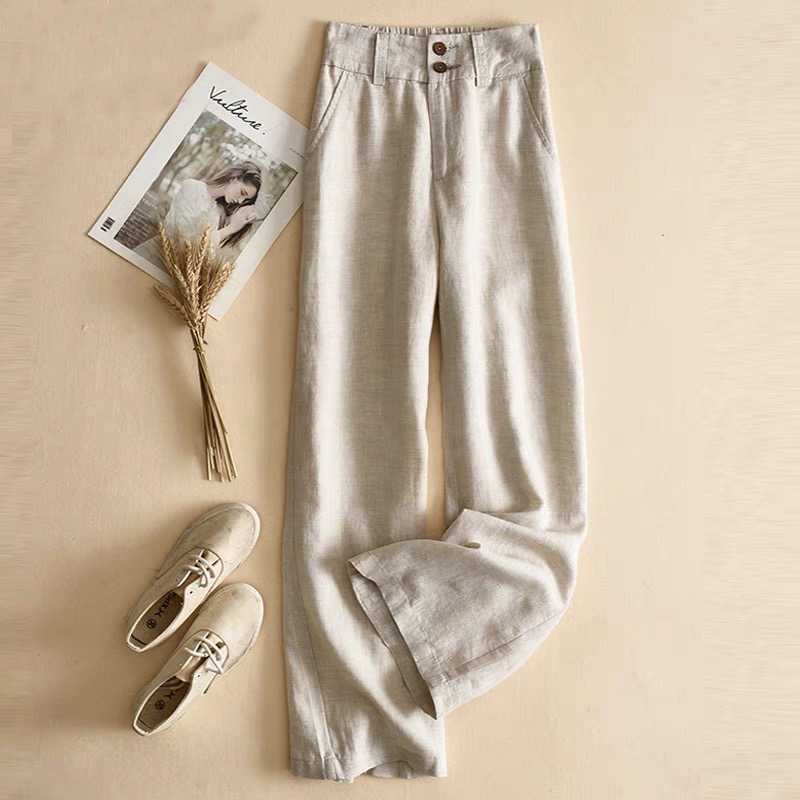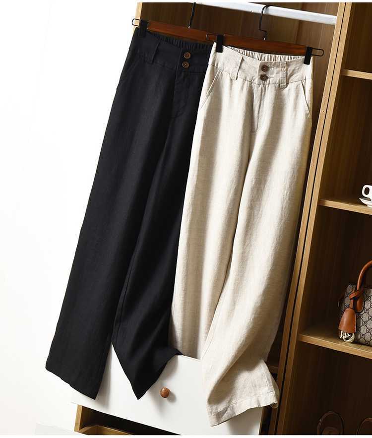 새로운 대외 무역 수출 꼬리 단일 여성의 느슨한 면화 및 린넨 넓은 다리 바지 높은 허리 투약 린넨 스트레이트 바지