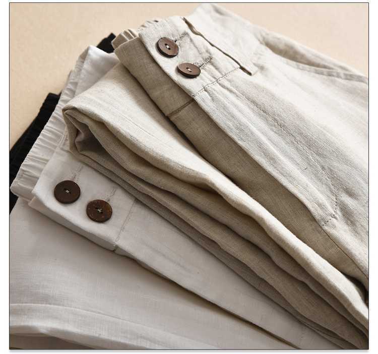 새로운 대외 무역 수출 꼬리 단일 여성의 느슨한 면화 및 린넨 넓은 다리 바지 높은 허리 투약 린넨 스트레이트 바지스토어 가기