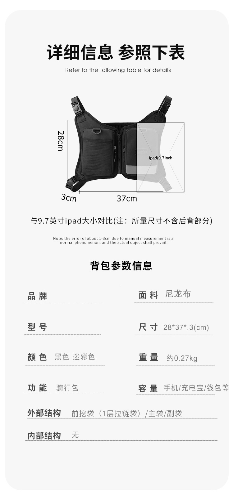 남성과 여성을위한 새로운 옥스포드 천 위장 야간 실행 가방 패션 가슴 가방 야외 스포츠 승마 배낭 공장 도매스토어 가기
