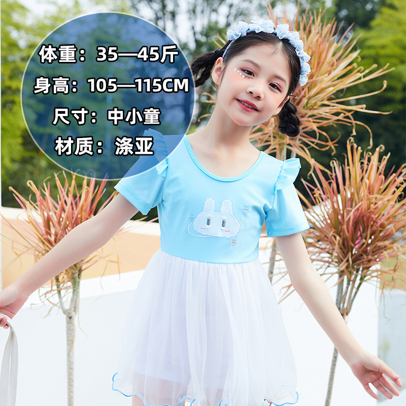 어린이 수영복 여자 반팔 세트 어린이 선 스크린 비치 귀여운 빠른 건조 수영복 여자 수영복