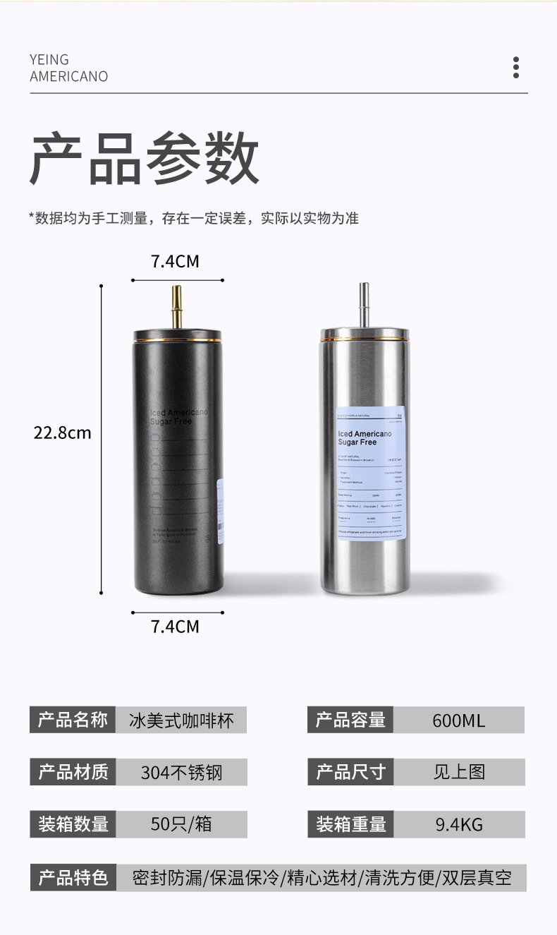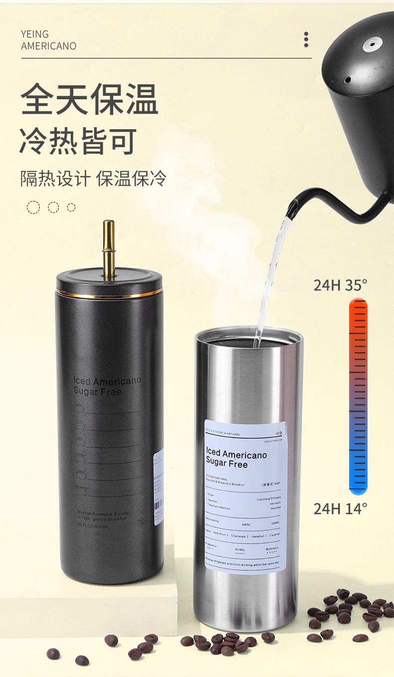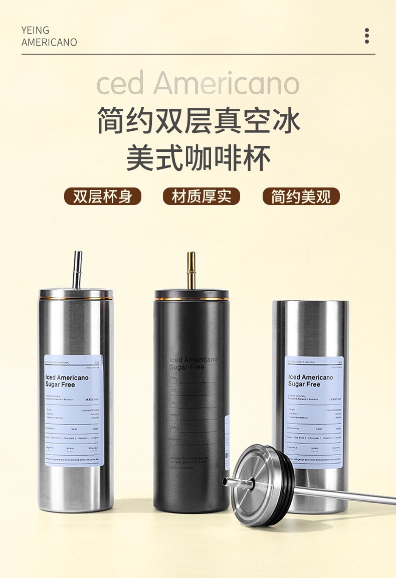 창조적 인 간단한 304 스테인레스 스틸 보온병 컵 더블 레이어 차가운 얼음 보존 미국 커피 컵 사무실 휴대용 흡입 컵
