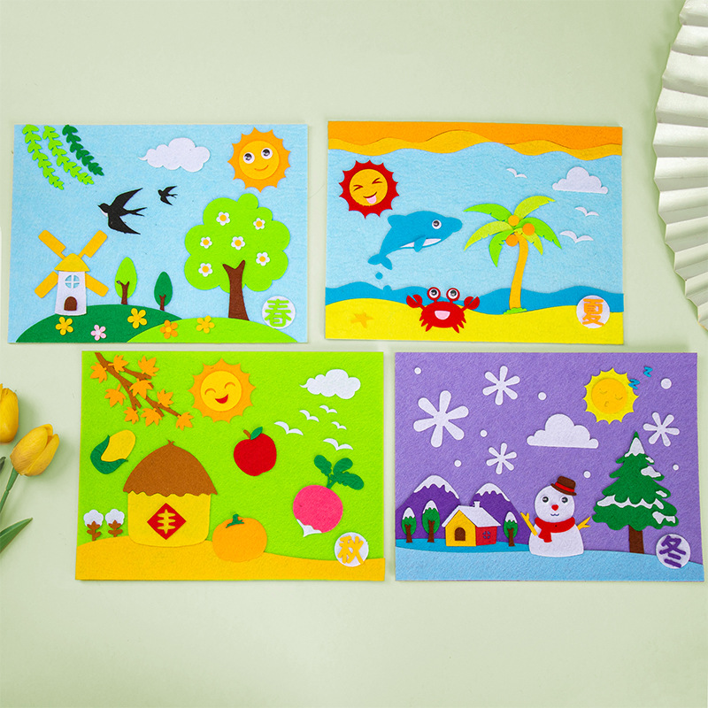 어린이 수제 DIY 사계절 부직포 스티커 유치원 부모-자식 창조적 인 생산 페이스트 재료 패키지