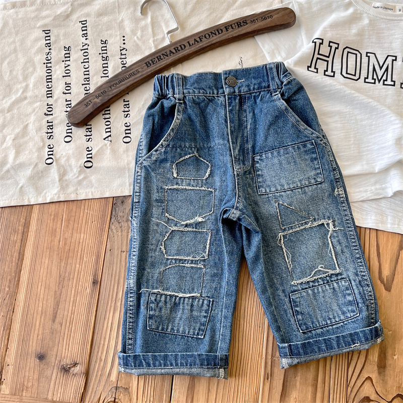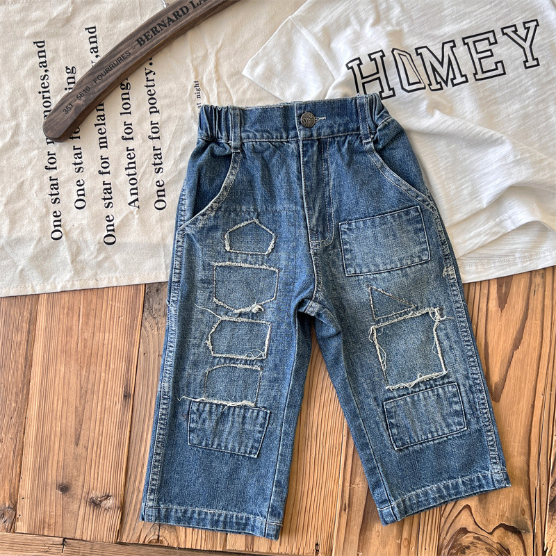 [특가, 반품 불가] 일본 아동복 중고 DD 어린이 패치워크 빈티지 데님 팬츠