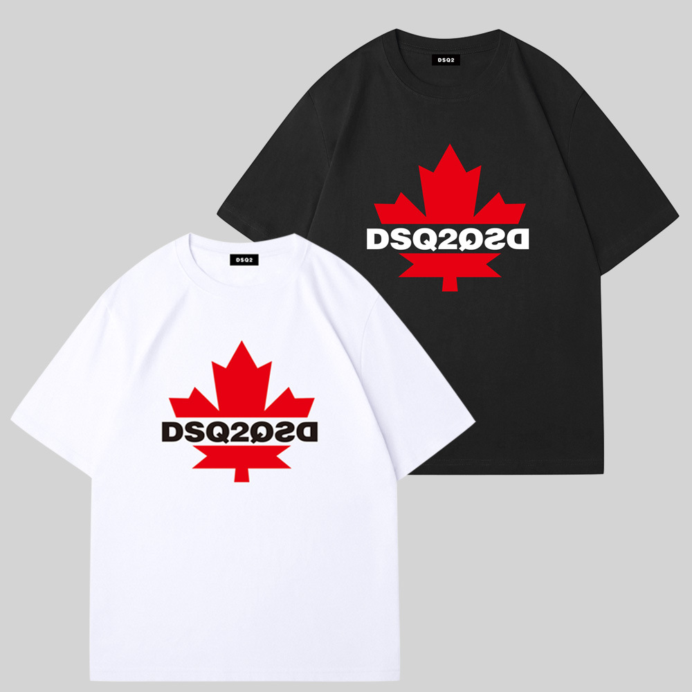 DSQ2 유럽과 미국의 패션 브랜드 남성 반팔 티셔츠 여성용 라운드 넥 코튼 흡수용베이스 셔츠 캐주얼 반소매 유행 남성