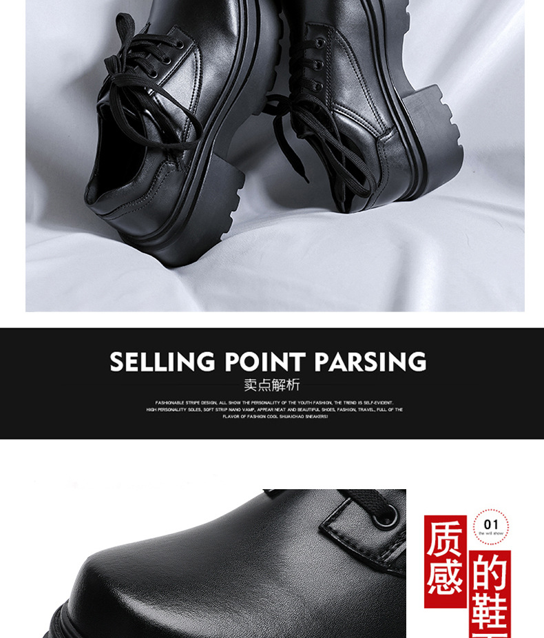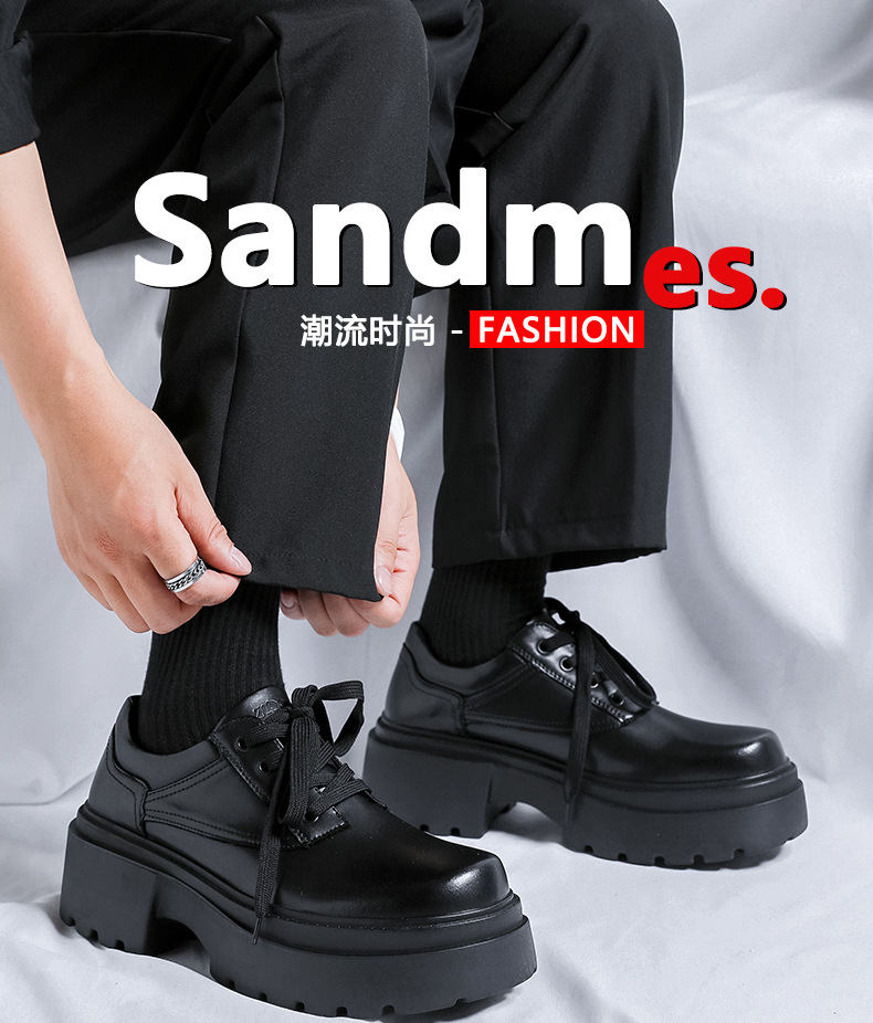 새로운 두꺼운 밑창 높이 증가 유럽과 미국의 가죽 신발 트렌디 레이스 업 하이 엔드 남성 패션 올 매치 캐주얼 스트리트 가죽 신발스토어 가기