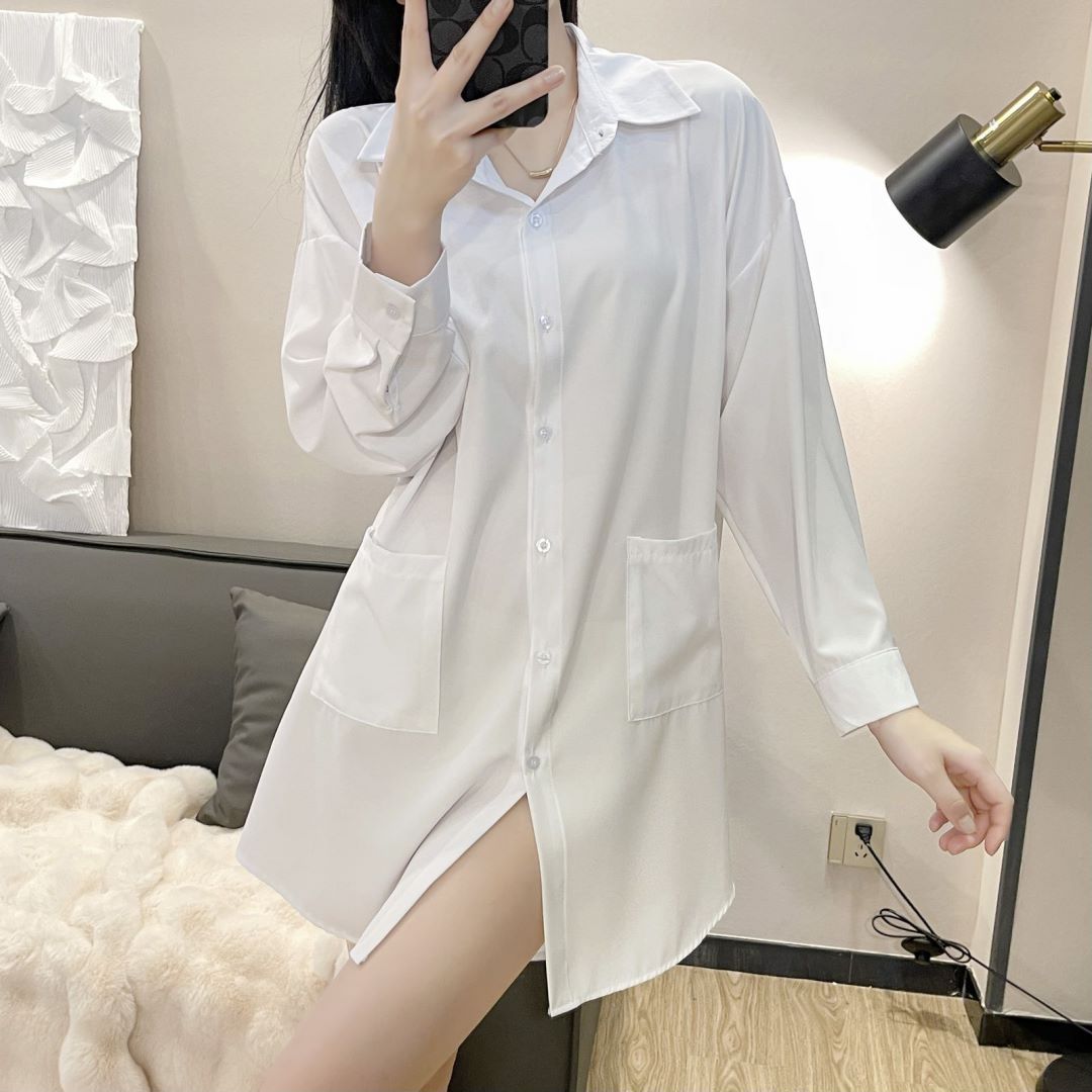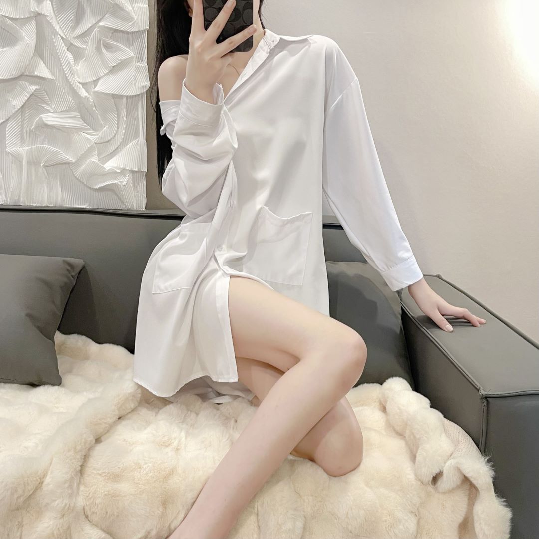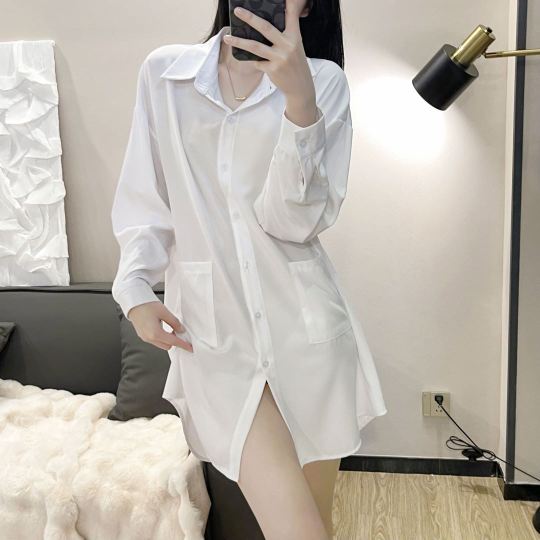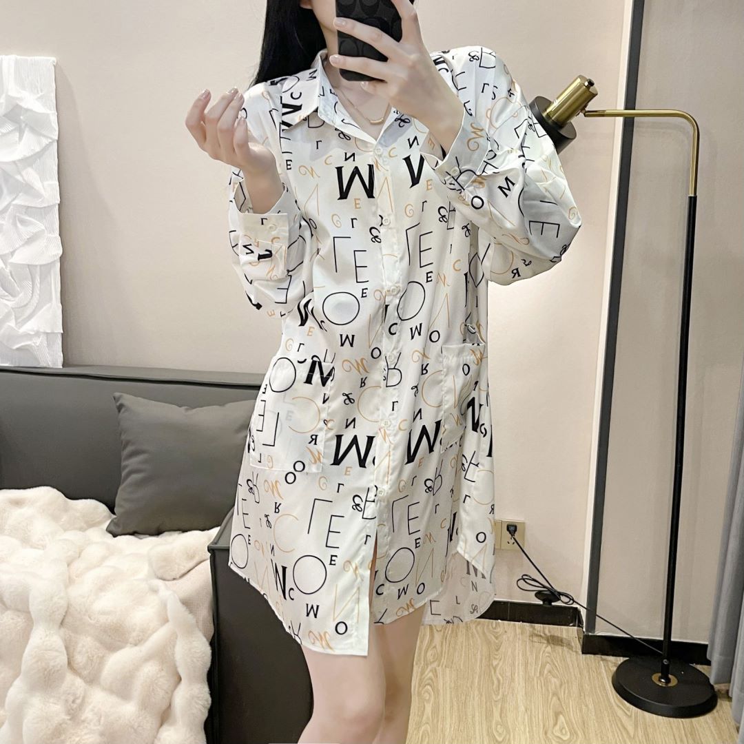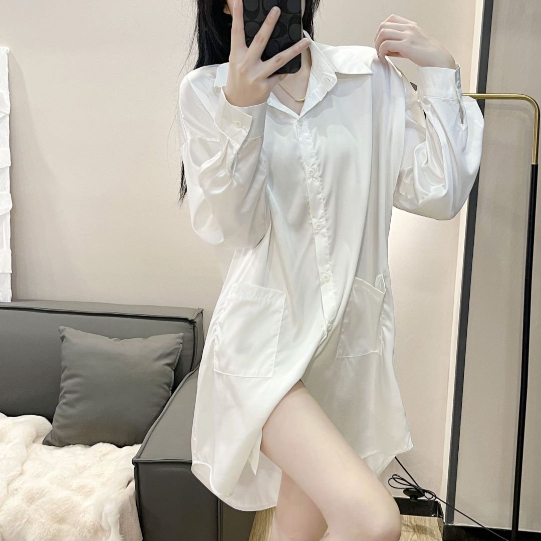 개인 잠옷 여성의 봄과 가을 섹시한 남자 친구 스타일 셔츠 파자마 여름 느슨한 인쇄 단색 홈 옷을 입고스토어 가기