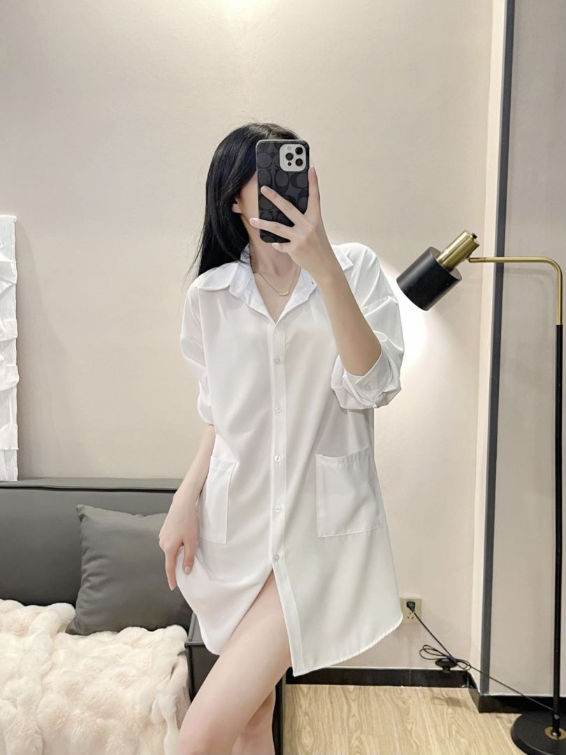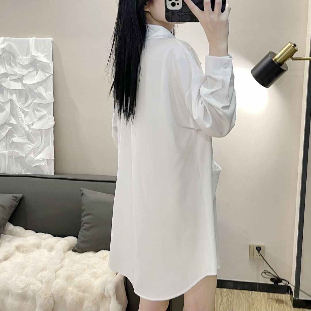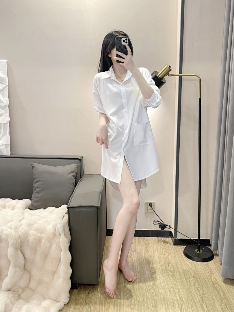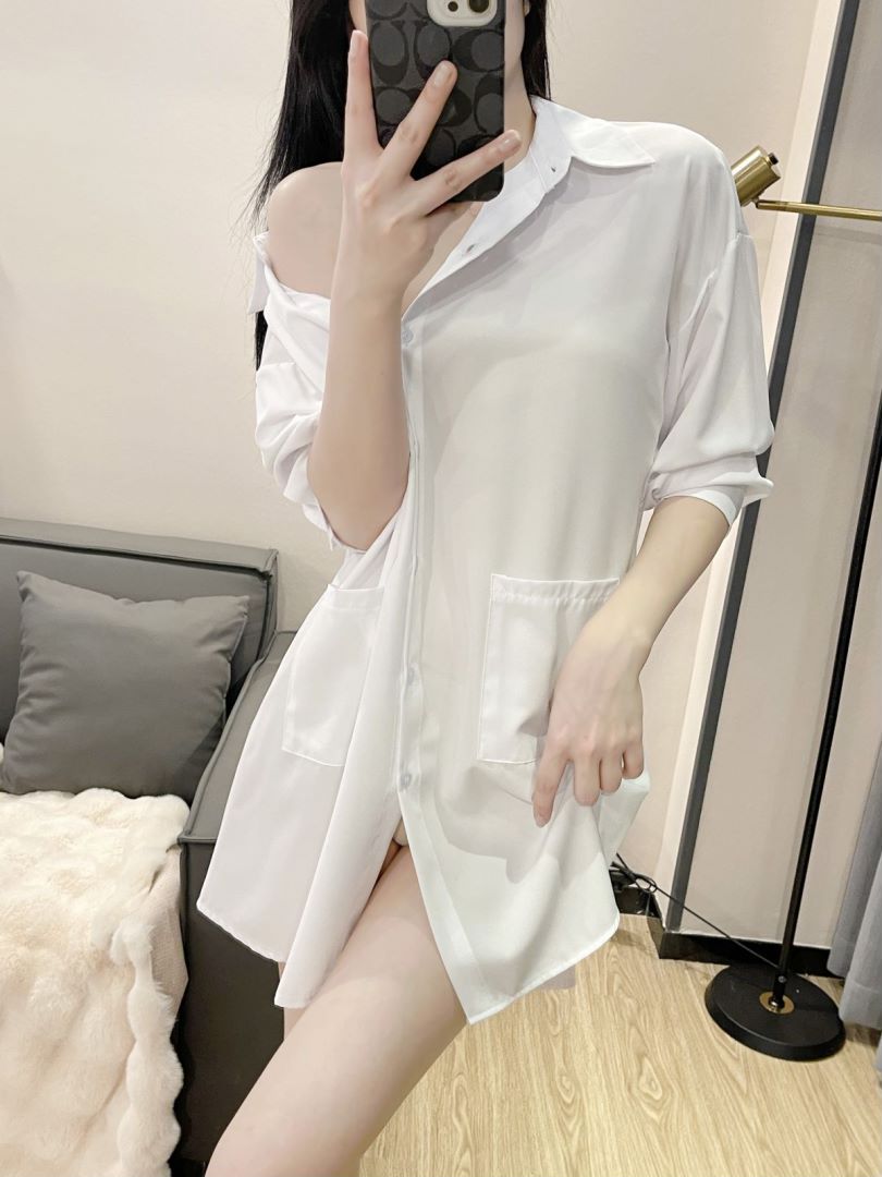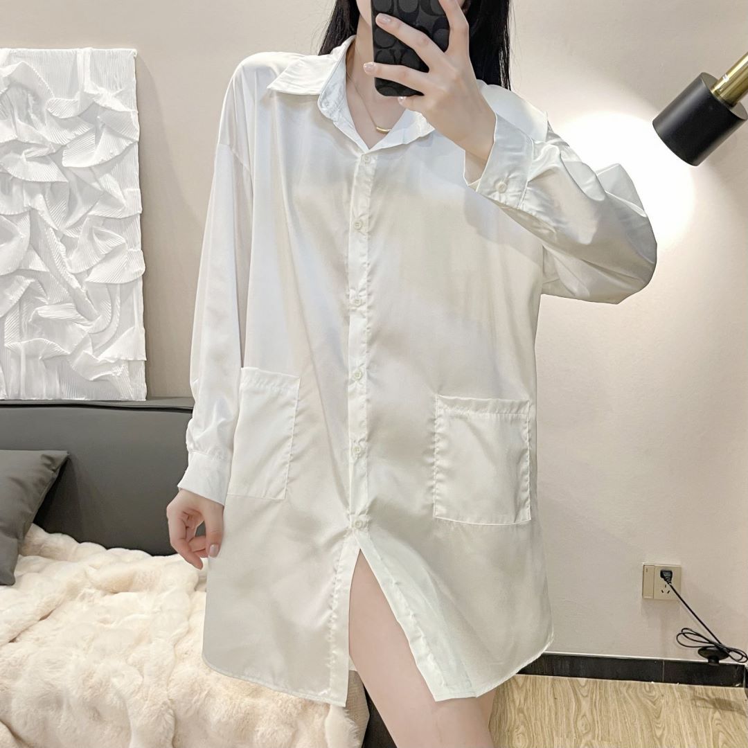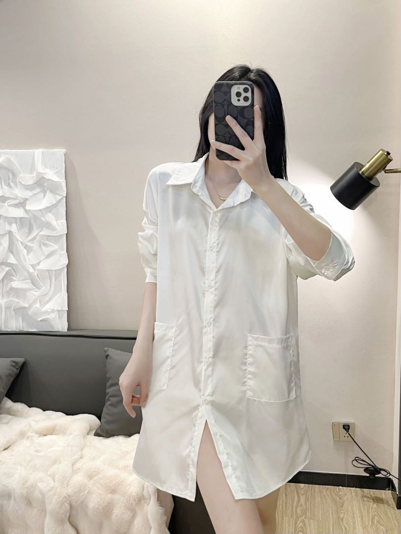 개인 잠옷 여성의 봄과 가을 섹시한 남자 친구 스타일 셔츠 파자마 여름 느슨한 인쇄 단색 홈 옷을 입고스토어 가기
