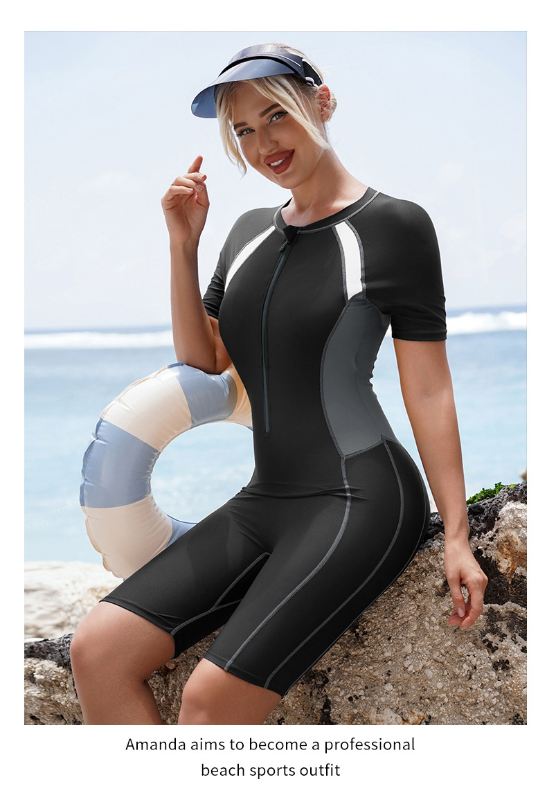 수영복 여성용 온천 2024 신형 대형 여성용 반팔 수영복 수영 세트 수영장 슬림 원피스 수영복