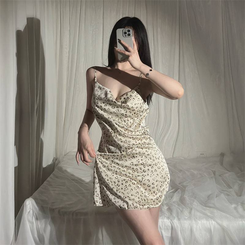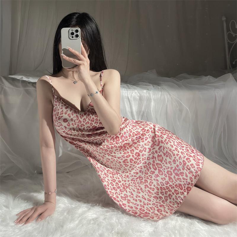 스윙 칼라 아이스 실크 인쇄 실크 슬링 나이트 가운 여성의 여름 2024 새로운 도착 복장스토어 가기