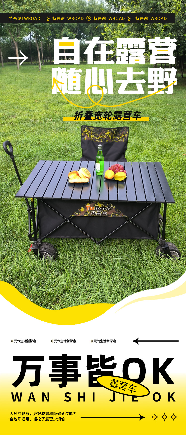 캠핑 카트 봄 나들이 접이식 야외 카트 피크닉 카트 캠프 트레일러 풀로드 풀 카트 도매 헤어 세대