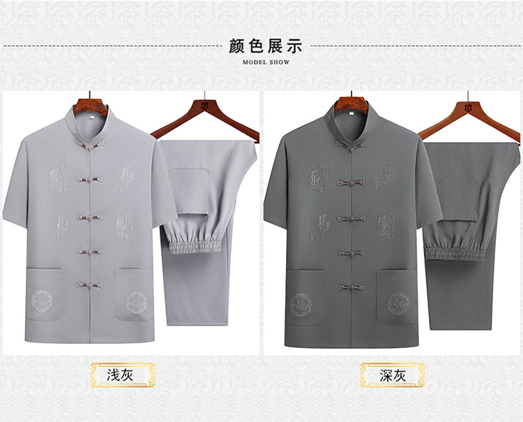 기질 탕 세트 남성 중년 및 노인 아빠의 여름 세트 중국 스타일 반팔 상위 60 세 할아버지 투피스 세트스토어 가기