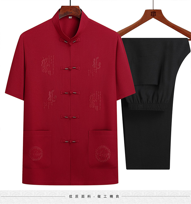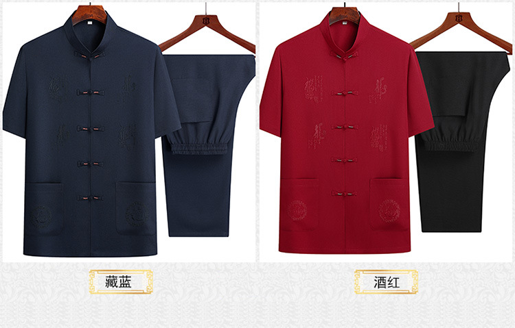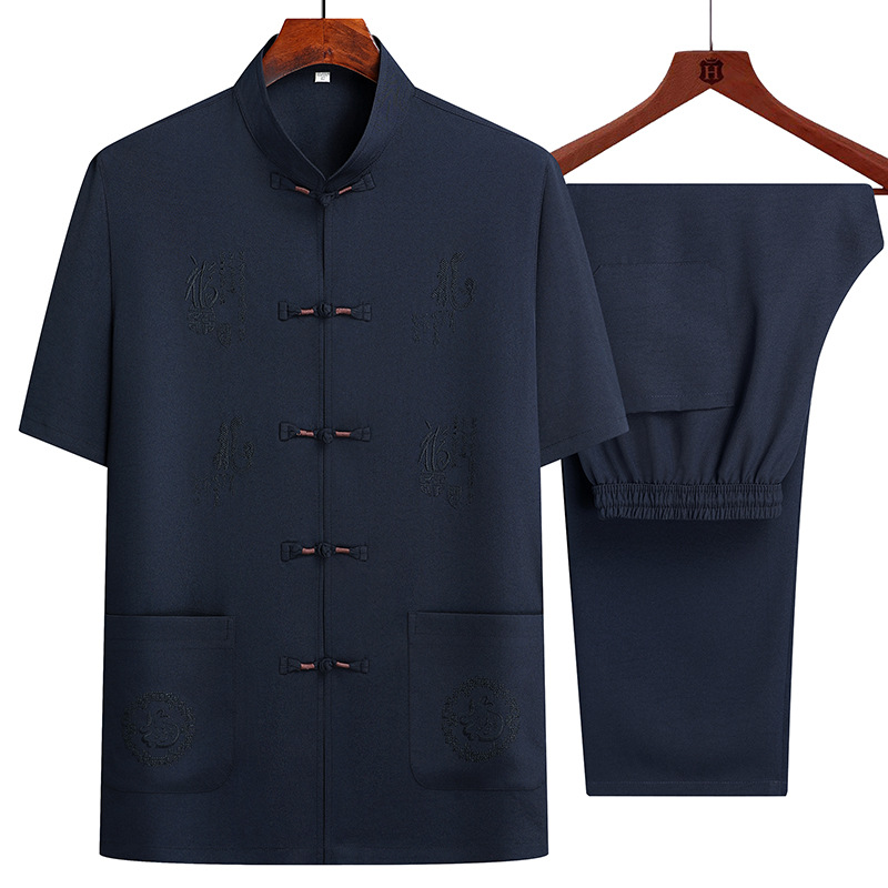 기질 탕 세트 남성 중년 및 노인 아빠의 여름 세트 중국 스타일 반팔 상위 60 세 할아버지 투피스 세트