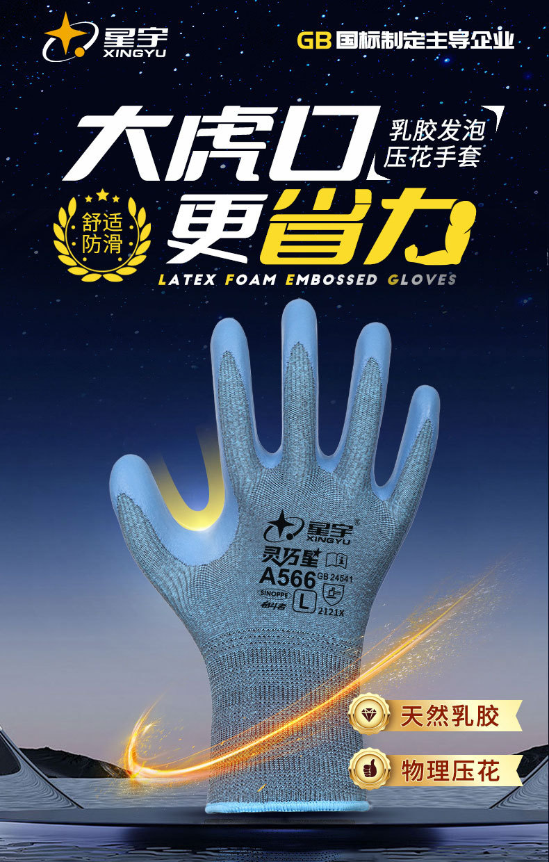 Xingyu 정품 A566 라텍스 장갑 건설 현장 건설 공장 작업 물류 취급 내마모성 미끄럼 방지 노동 장갑