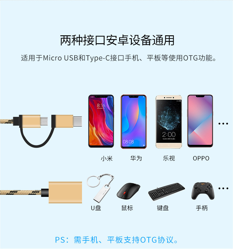 Apple Type-C 듀얼 인터페이스 MICROOTG 2-in -1 USB 어댑터 USB 디스크 마우스 및 키보드 OTG 케이블에 적용 가능