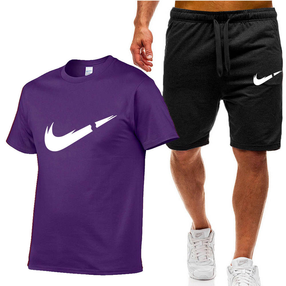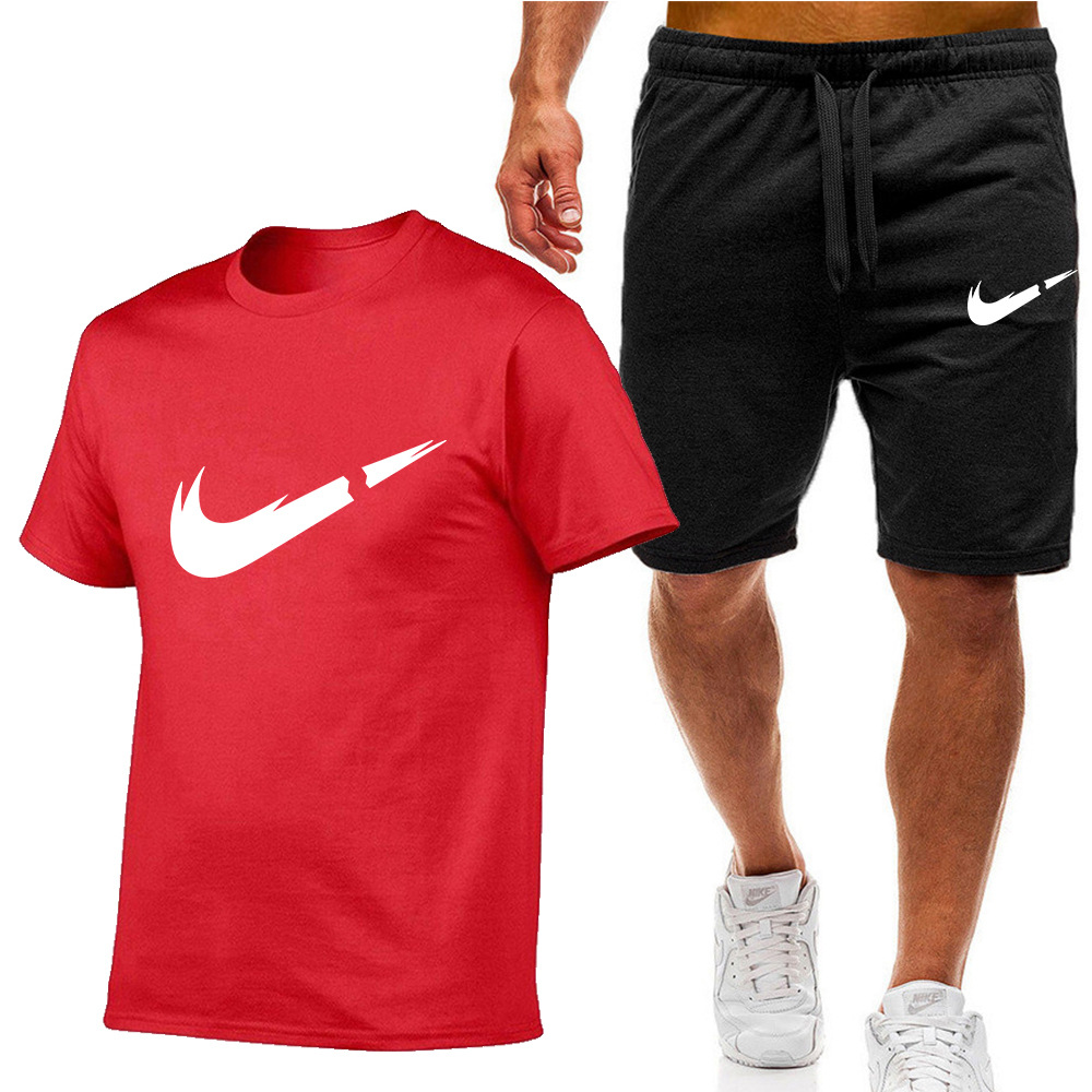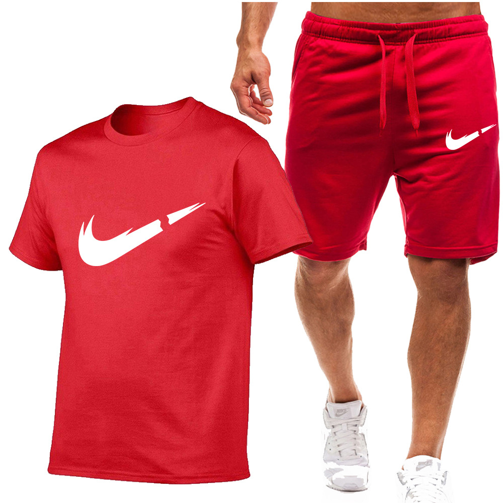 여름 신상 남성복 세트 면 반팔 티셔츠+반바지 캐주얼 스포츠 세트 투피스 세트
