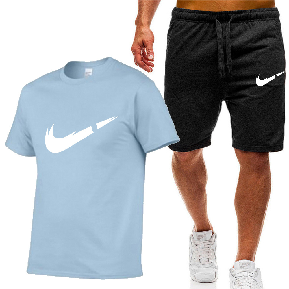 여름 신상 남성복 세트 면 반팔 티셔츠+반바지 캐주얼 스포츠 세트 투피스 세트스토어 가기