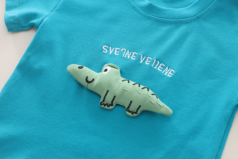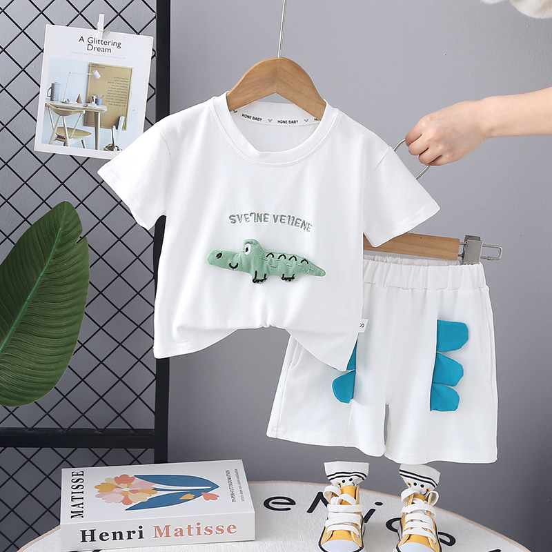 소년의 반소매 여름 세트 여름 새 스타일 아기의 서양식 얇은 아기의 3 차원 공룡 반팔 투피스 세트스토어 가기