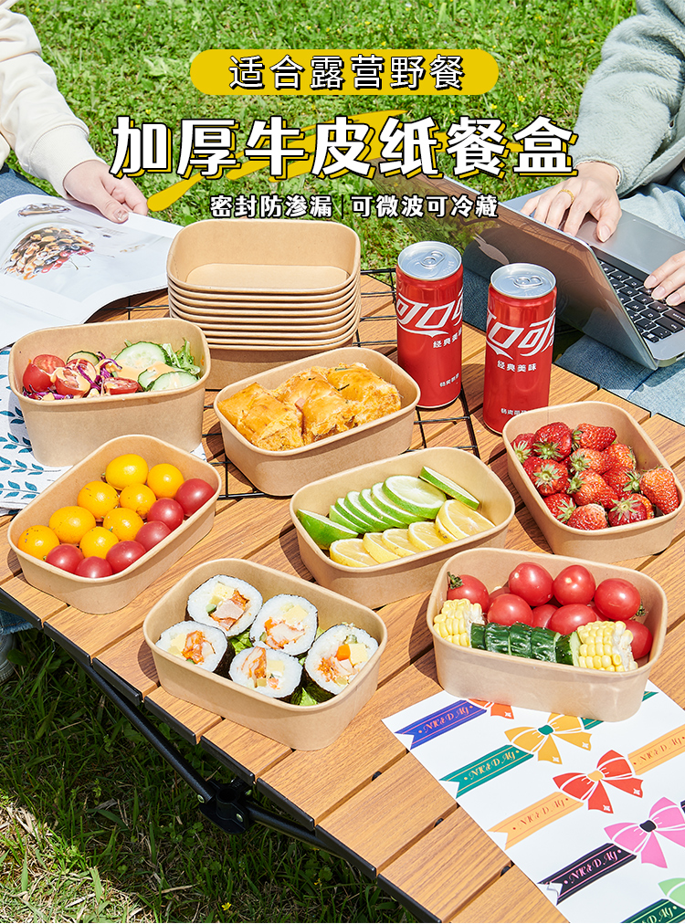 크래프트 종이 캠핑 피크닉 상자 과일 케이크 디저트 일회용 도시락 점심 스시 종이 상자 가벼운 음식 포장 상자스토어 가기