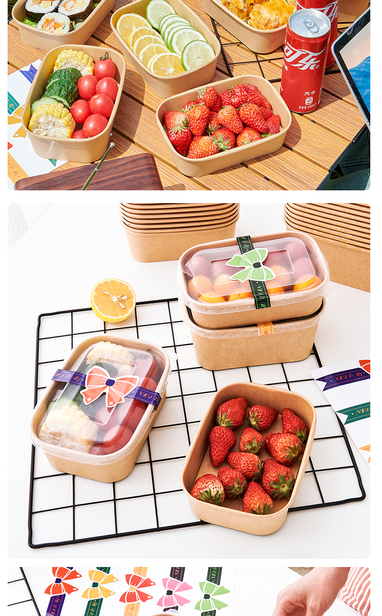 크래프트 종이 캠핑 피크닉 상자 과일 케이크 디저트 일회용 도시락 점심 스시 종이 상자 가벼운 음식 포장 상자