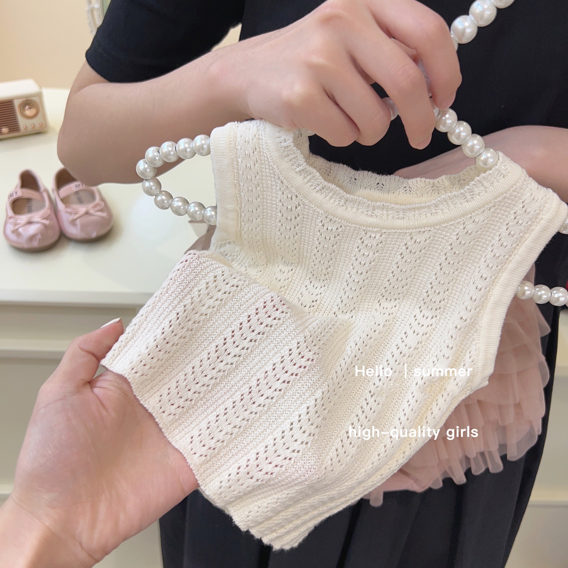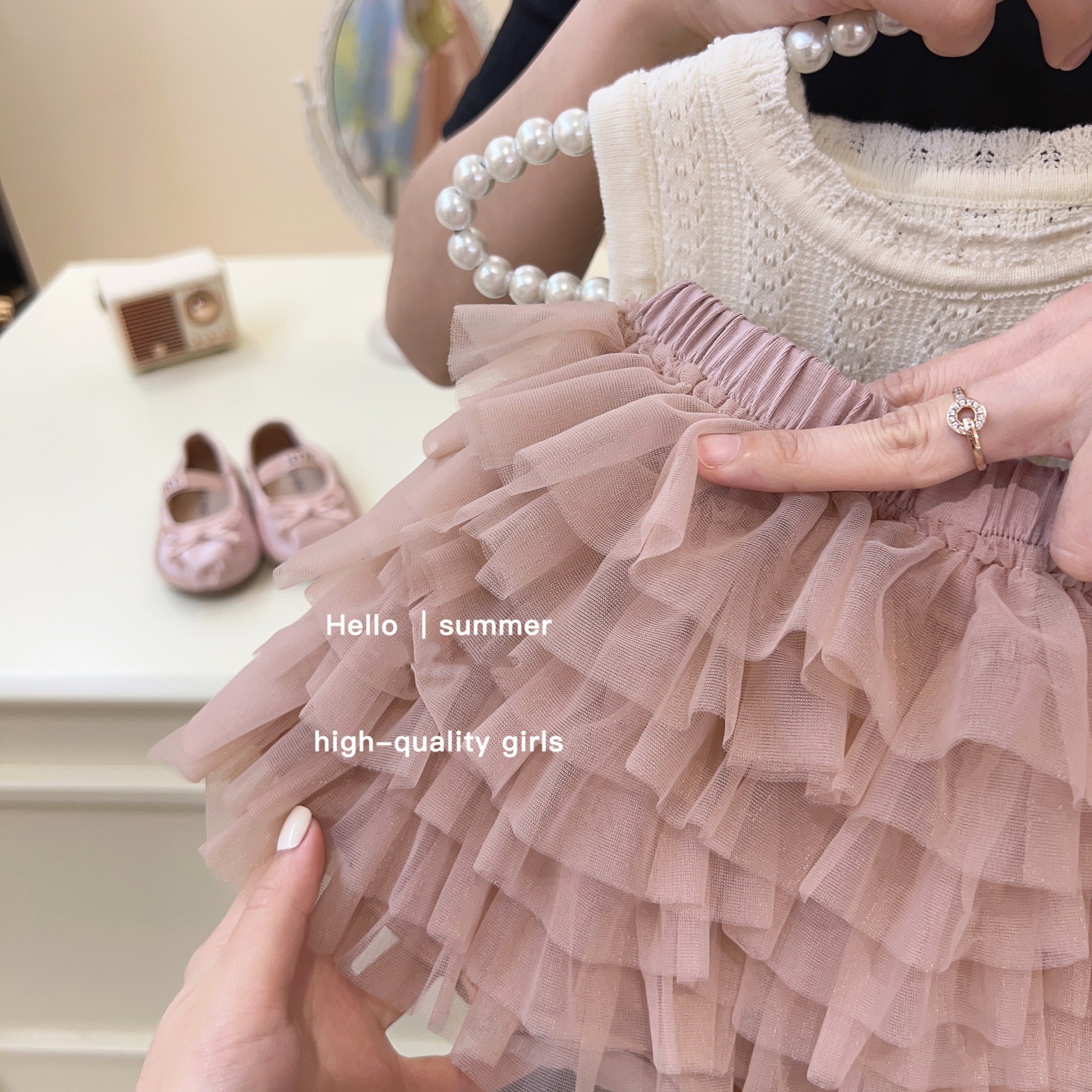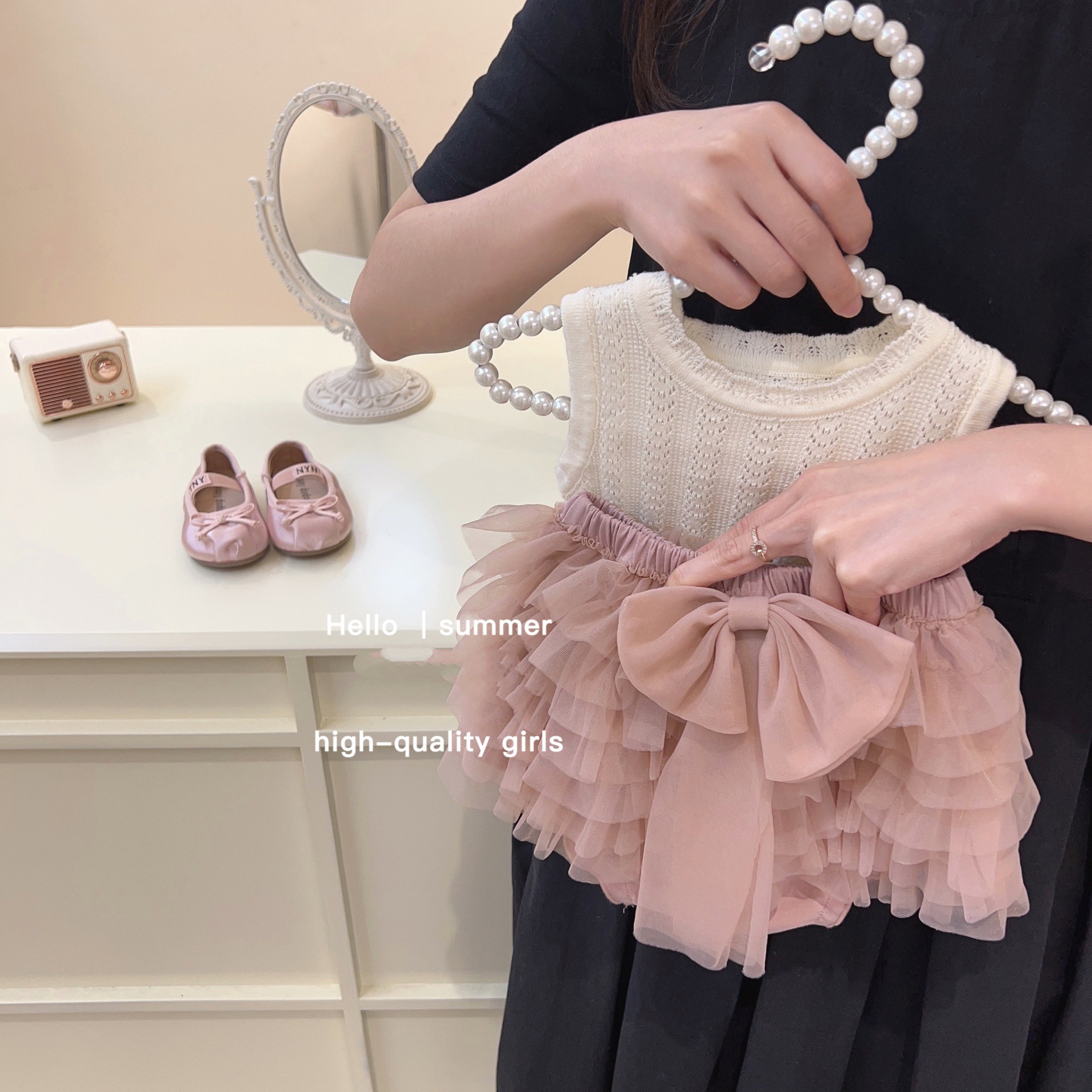 스위트 리틀 걸즈 여름 튜튜 팬츠 스커트 투피스 세트 메쉬 케이크 스커트 귀여운 민소매 반바지 투피스 유아동용스토어 가기
