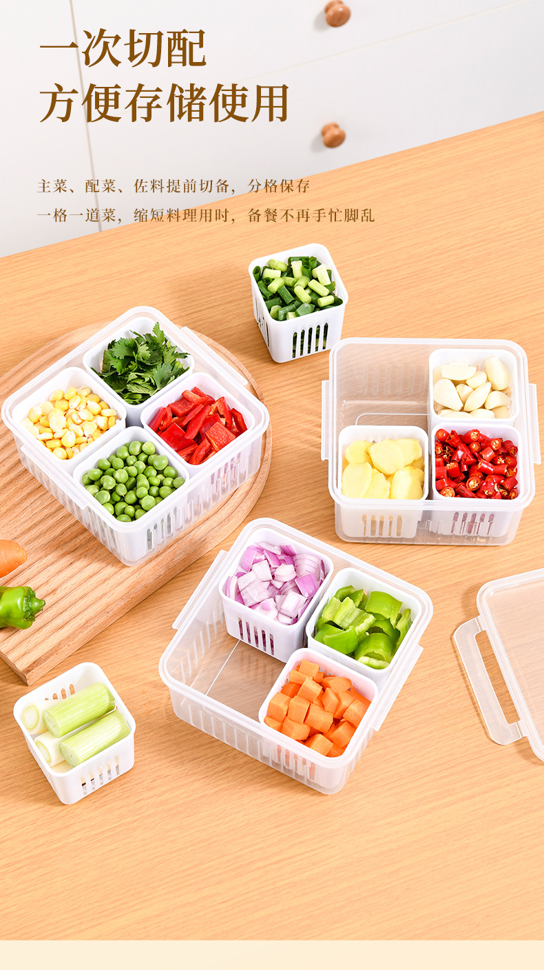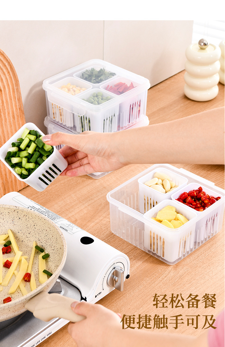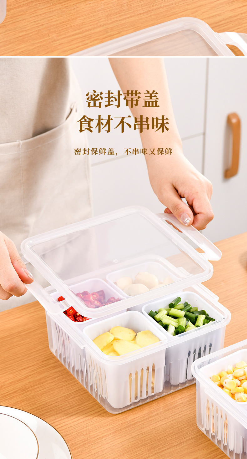창조적 인 가정용 두피, 생강 및 마늘 저장 상자 다기능 배수 4 칸 신선한 보관 상자 주방 냉장고 보관 상자