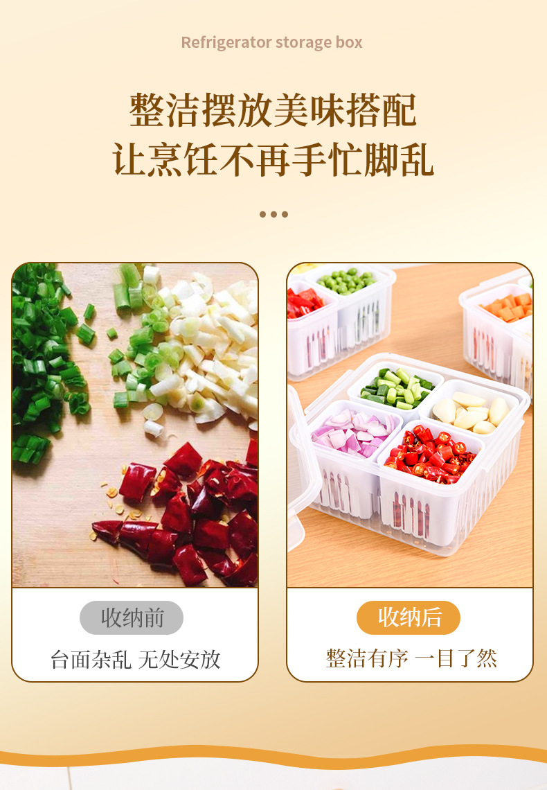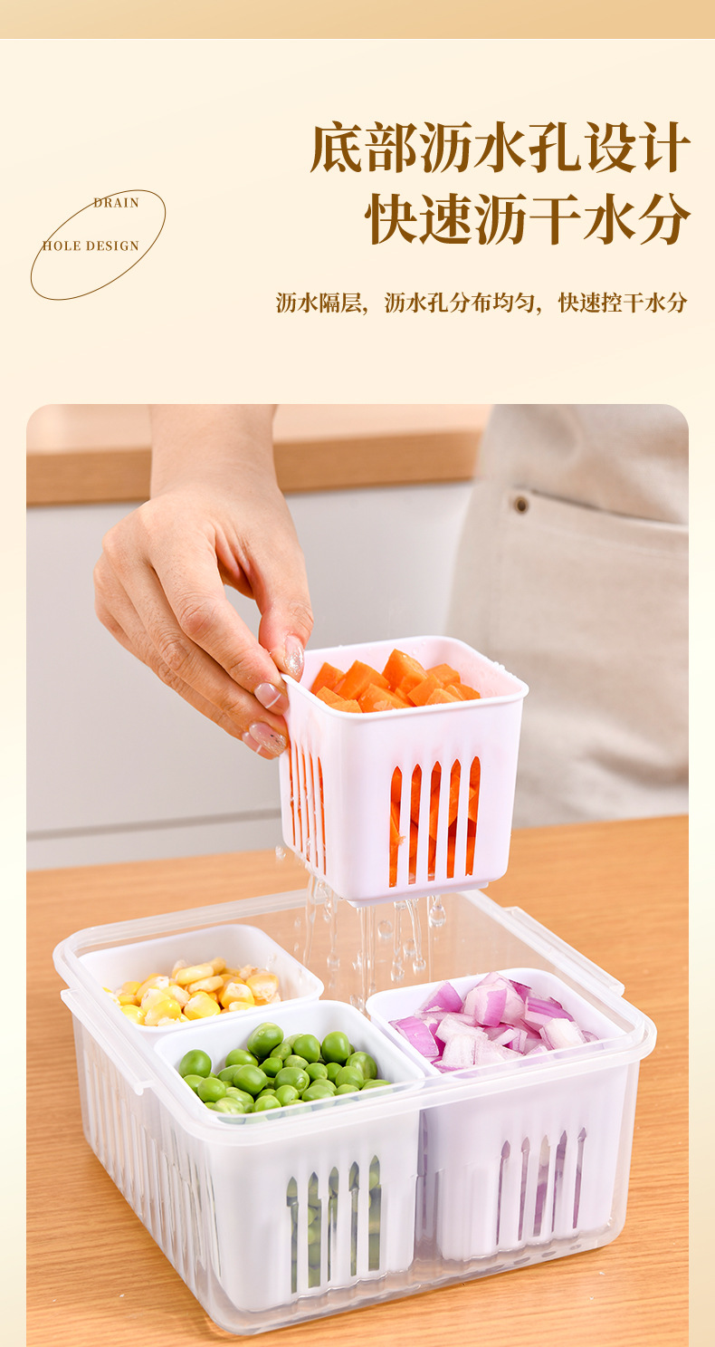 창조적 인 가정용 두피, 생강 및 마늘 저장 상자 다기능 배수 4 칸 신선한 보관 상자 주방 냉장고 보관 상자스토어 가기