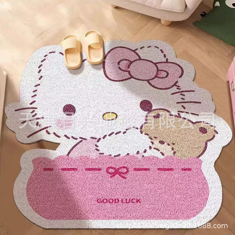 만화 산리오 실크 서클 바닥 매트, 출입문 매트, 집 입구 미끄럼 방지, 절단 가능한 발 매트, 귀여운스토어 가기