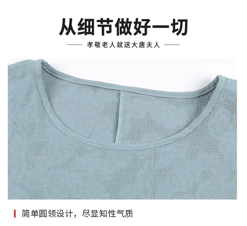 중년 및 노인 할머니 여름 옷 반팔 세트 면화와 린넨 여성 어머니 플러스 사이즈 여름 티셔츠 노인 노인 여성 옷스토어 가기