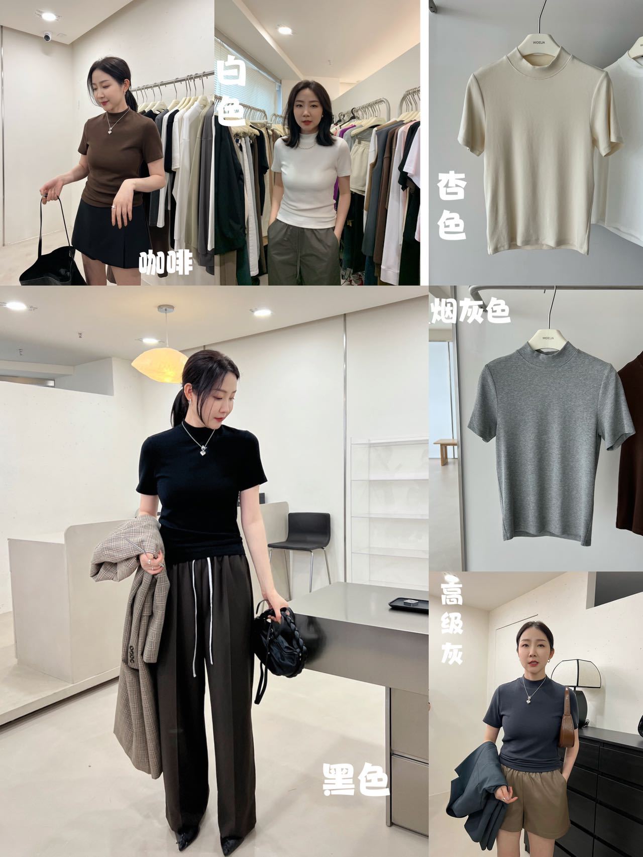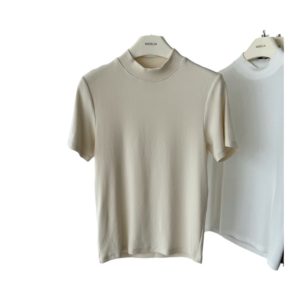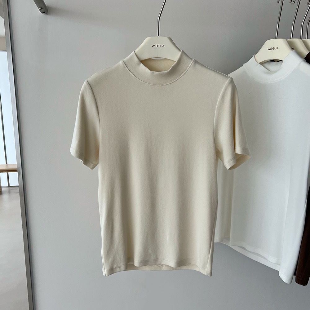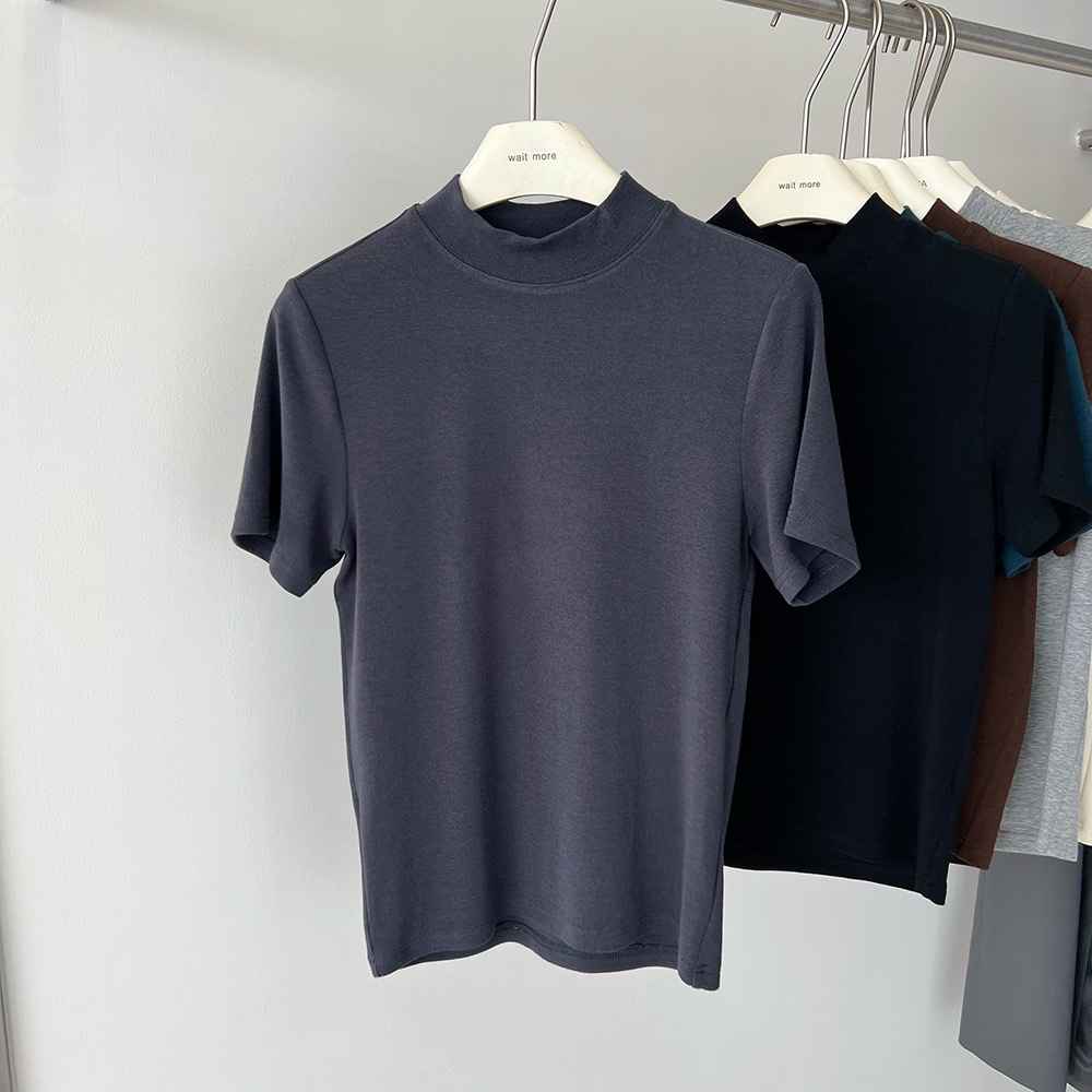 봄 여름 신작 티셔츠 보스 레이디 같은 스타일의 작은 스탠드 칼라 반팔 바닥 셔츠 솔리드 컬러 T 내부 슬림 고탄력 탑 여성용스토어 가기