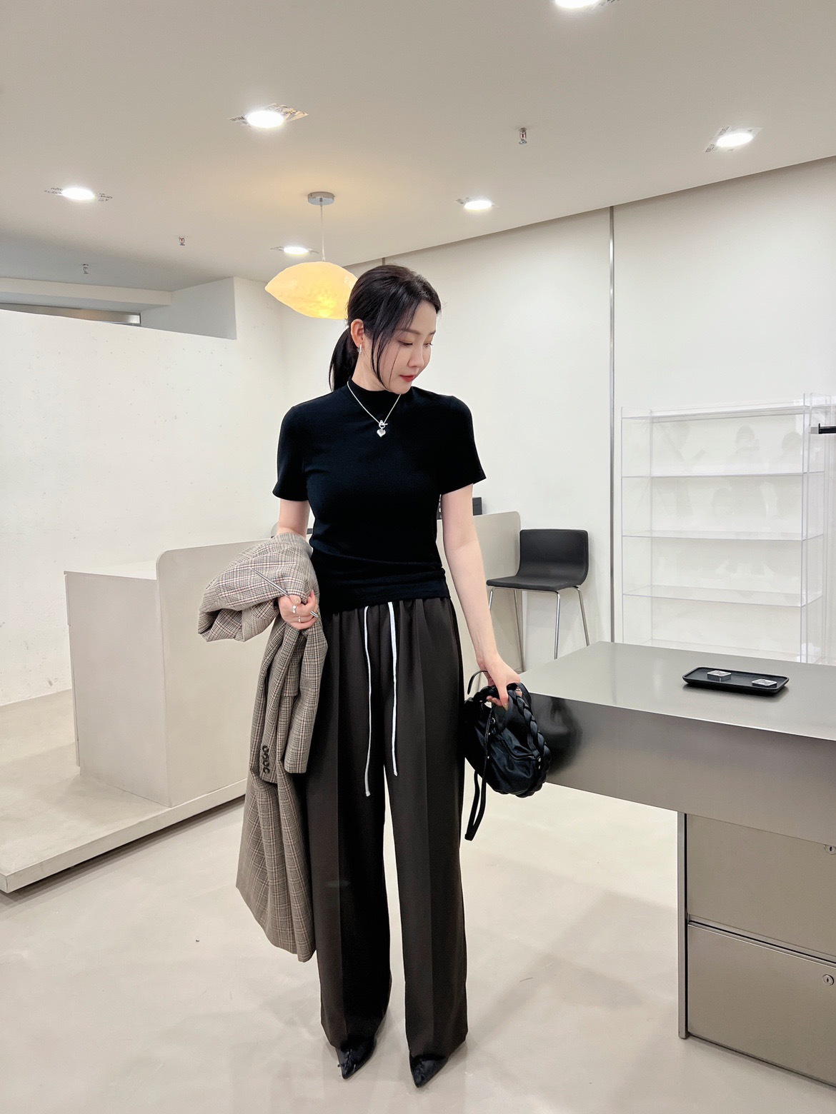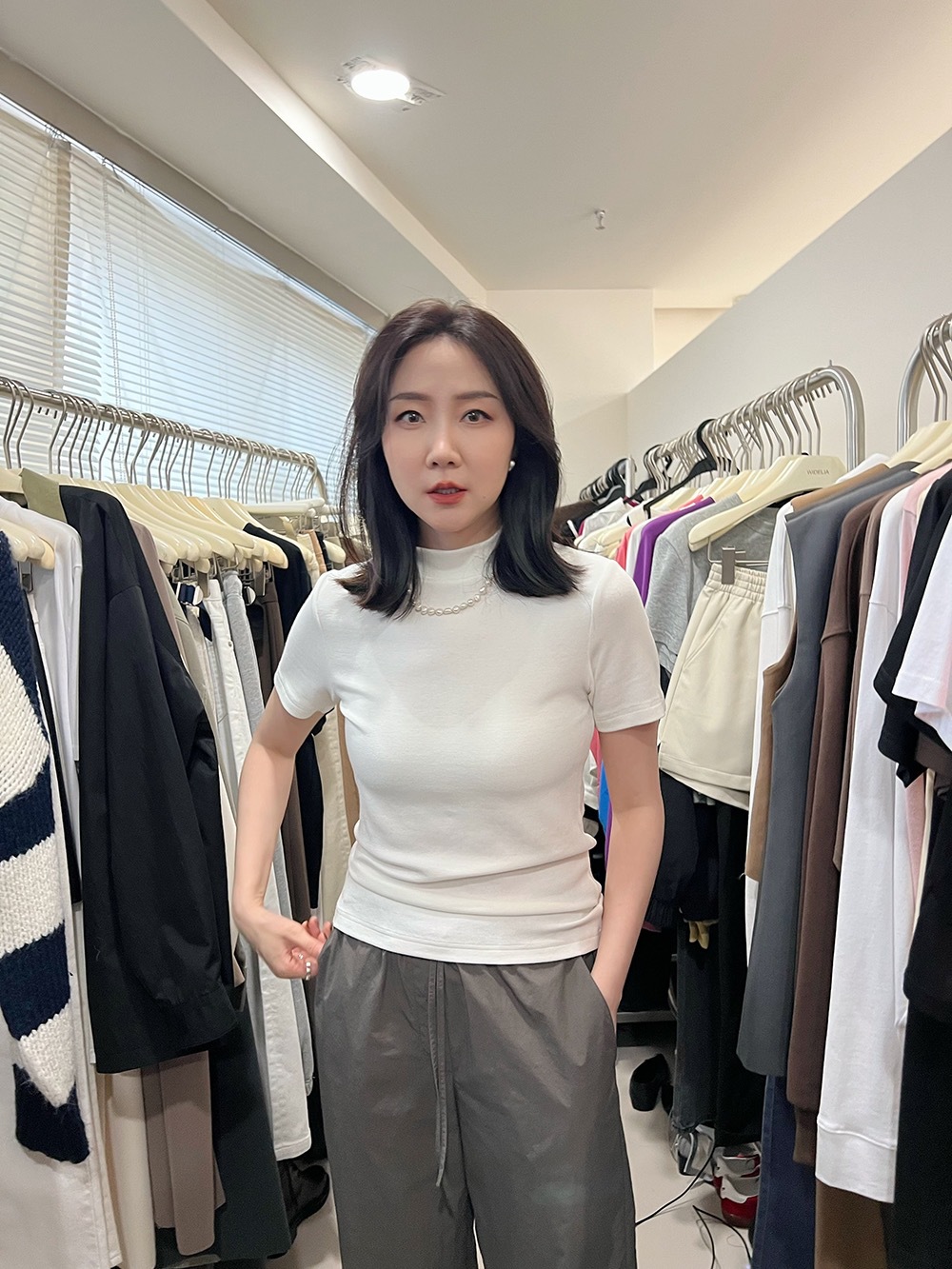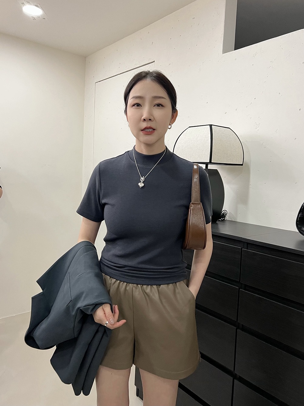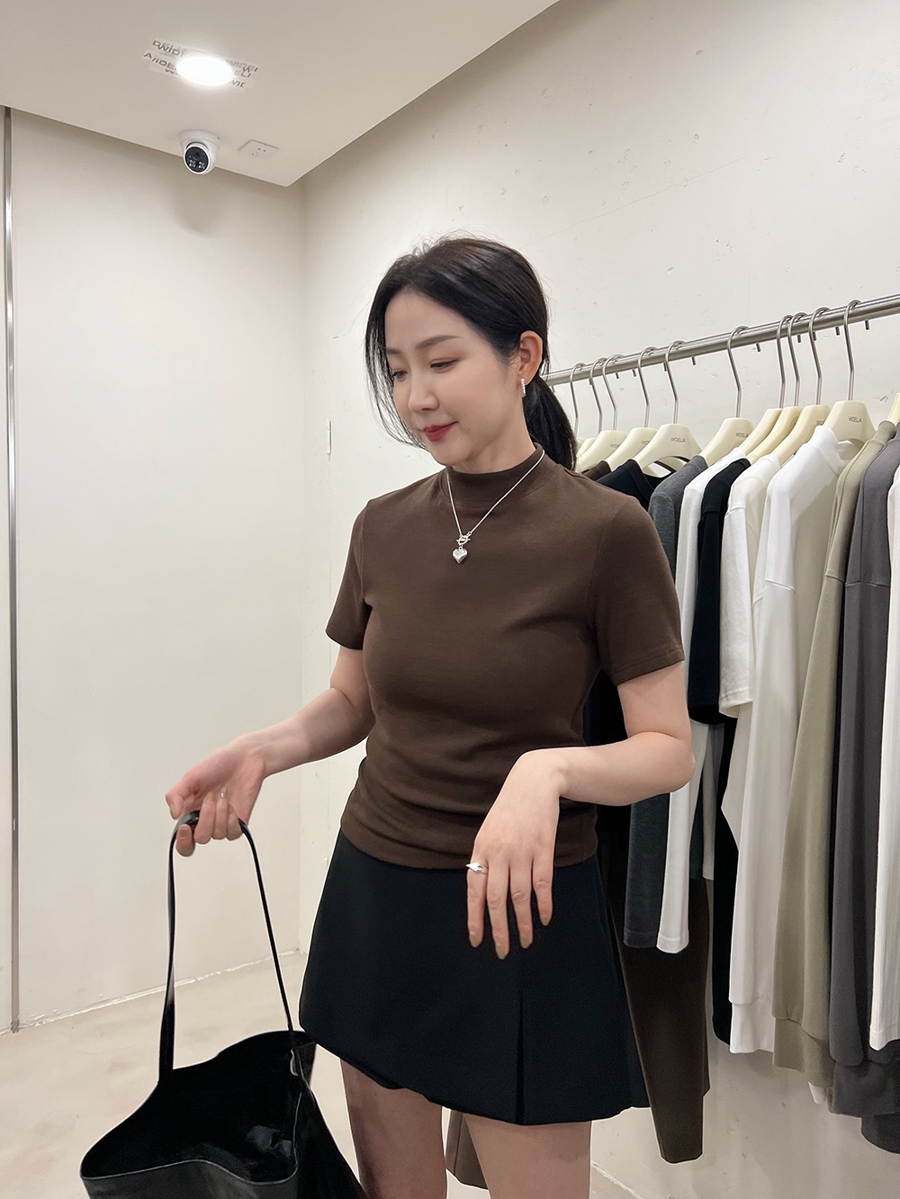 봄 여름 신작 티셔츠 보스 레이디 같은 스타일의 작은 스탠드 칼라 반팔 바닥 셔츠 솔리드 컬러 T 내부 슬림 고탄력 탑 여성용스토어 가기