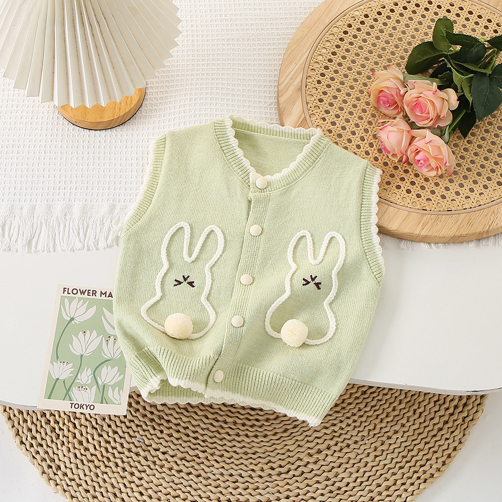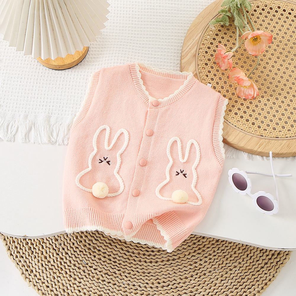 소녀 니트 조끼 어린이 봄과 가을 새 스웨터 카디건 얇은 외부 착용 토끼 왁스 코트 아기